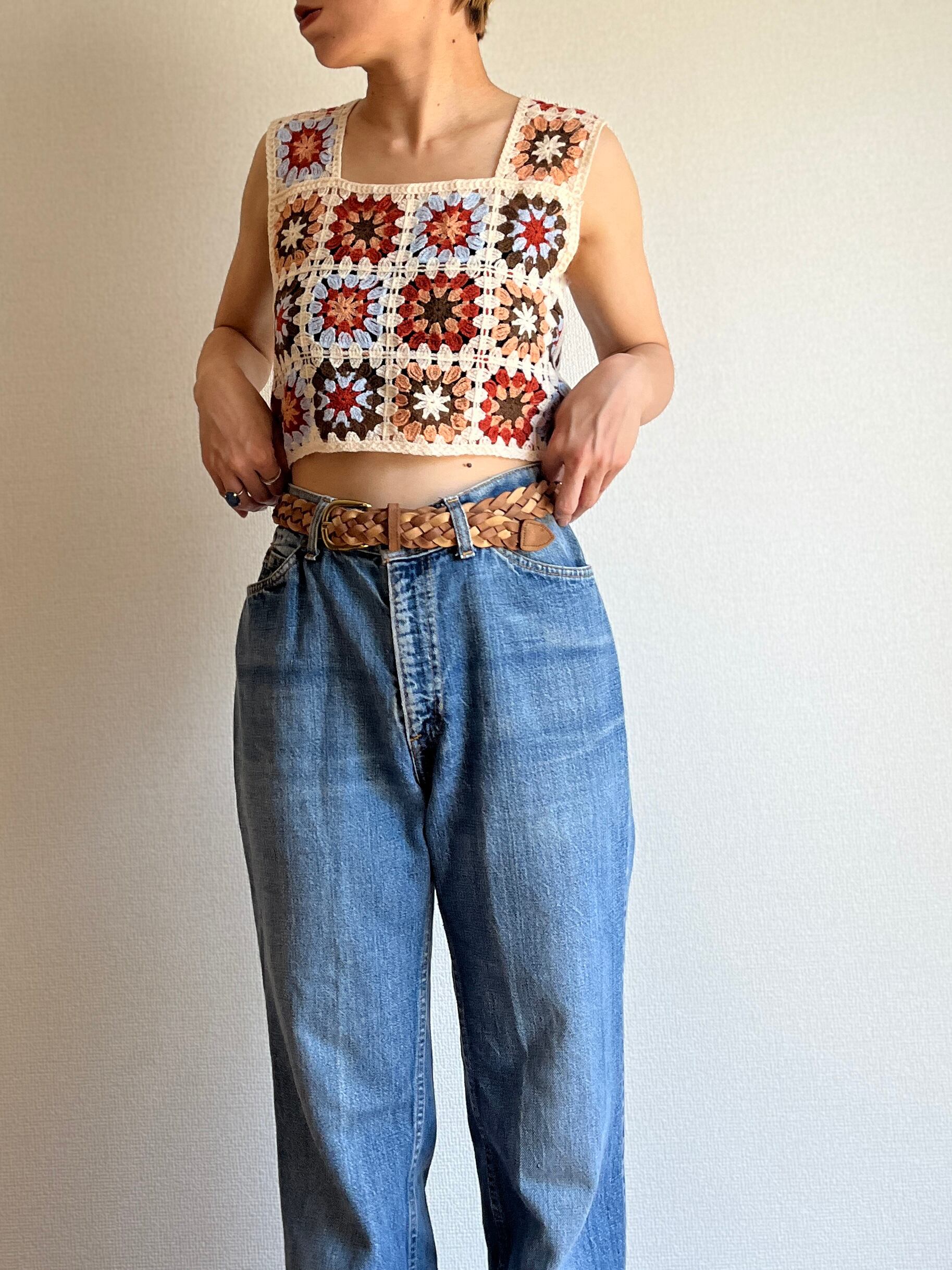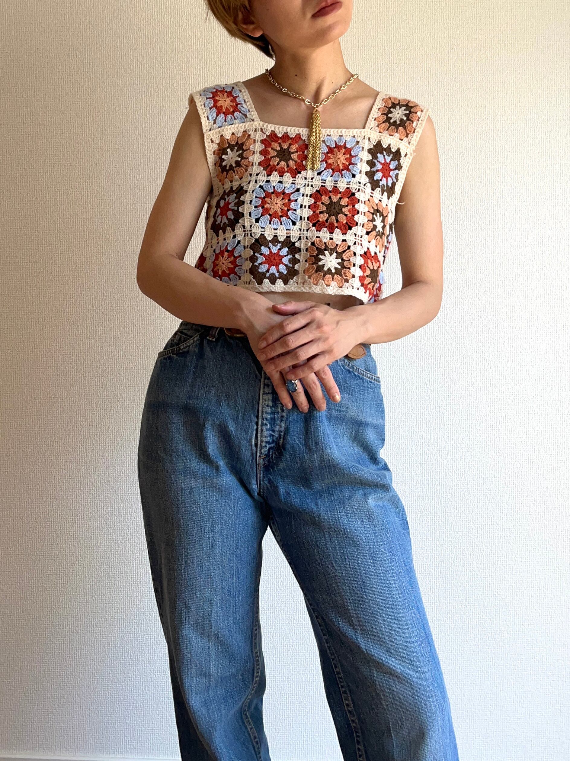 ハンドでは無いですが、パッチワークのデザインやカラーリングが素敵なビスチェ。