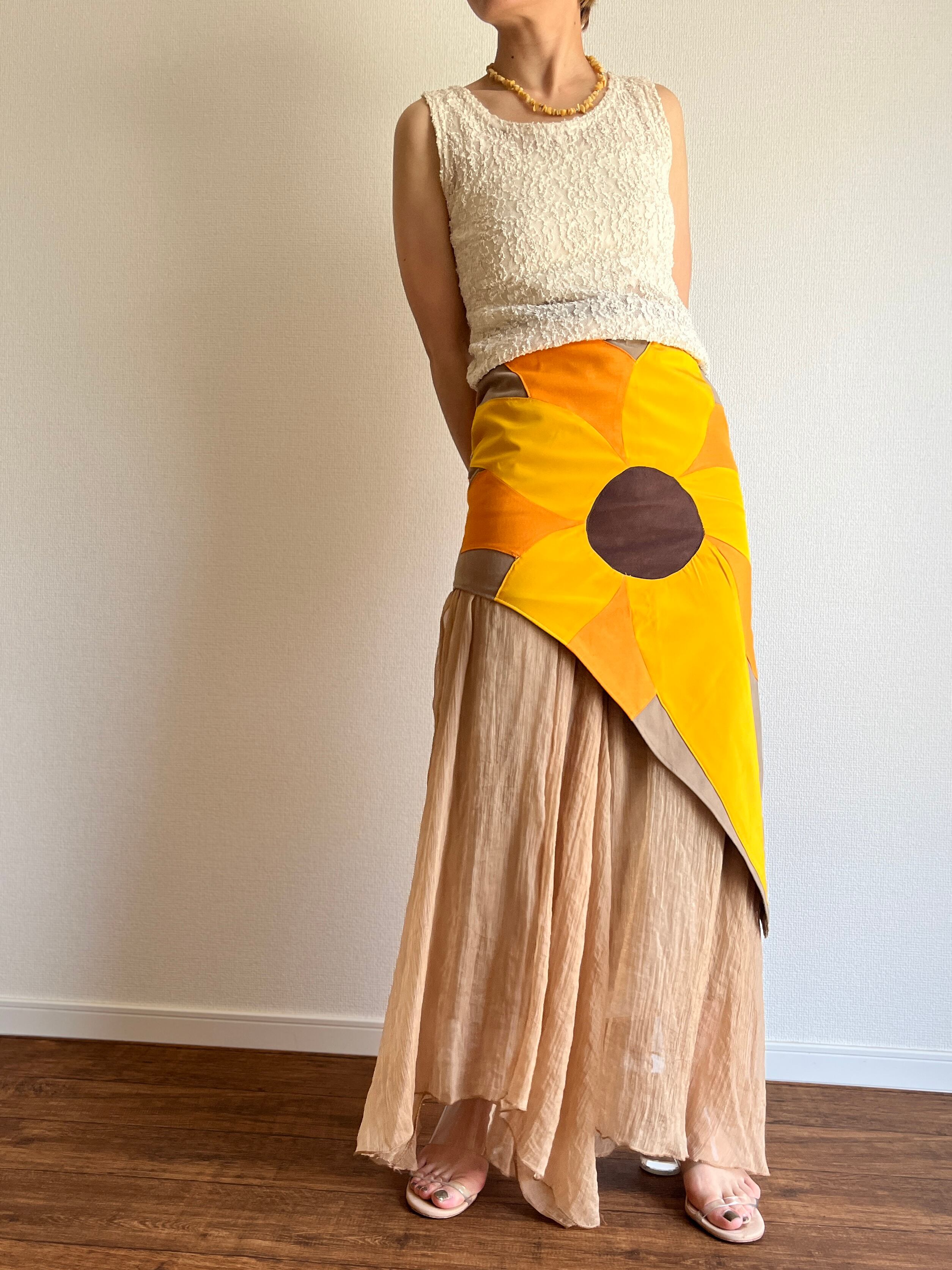 全面に入った向日葵と、深いアシンメトリーのデザインがこれからの季節にぴったりのヴィンテージスカートです!