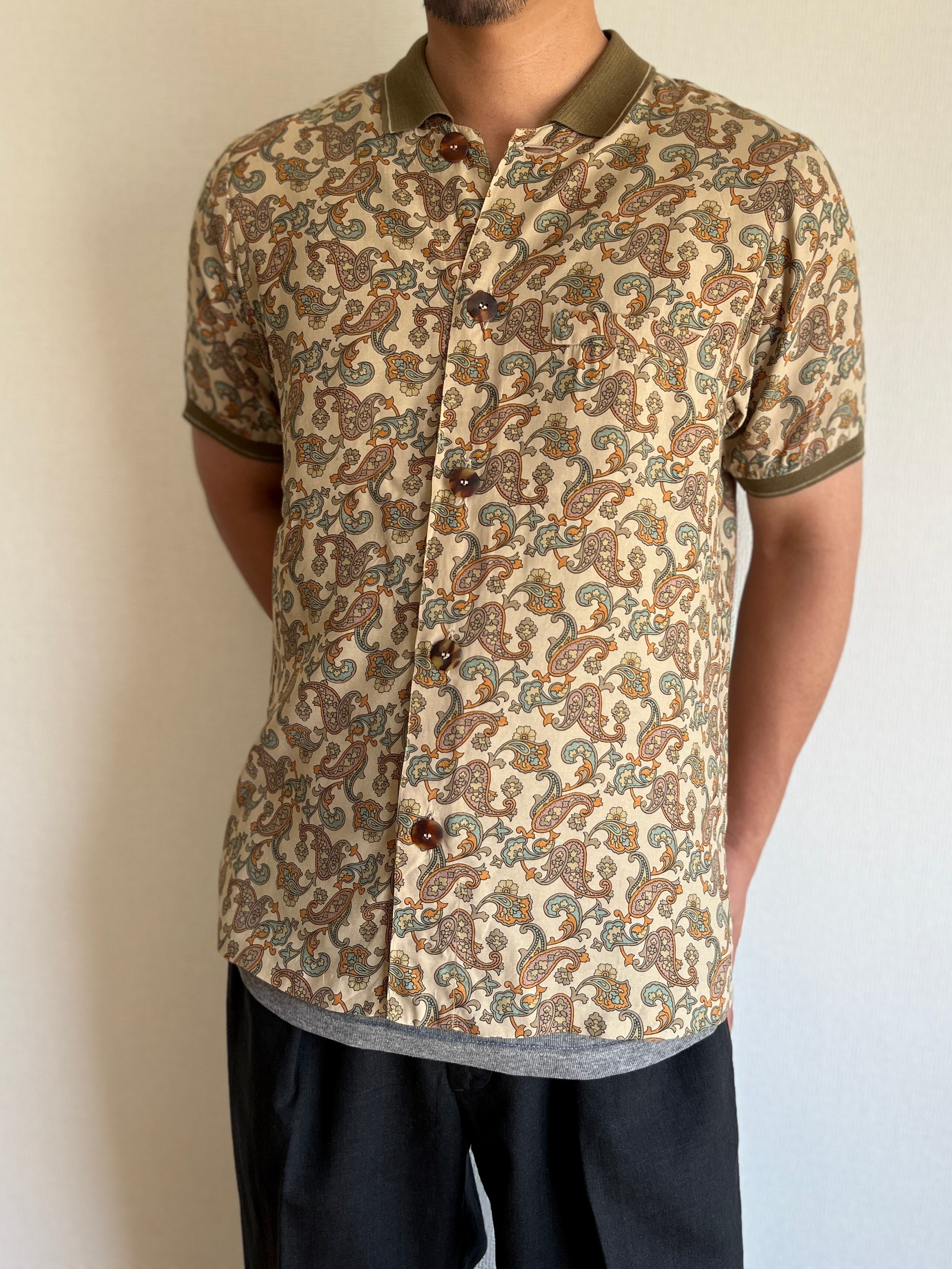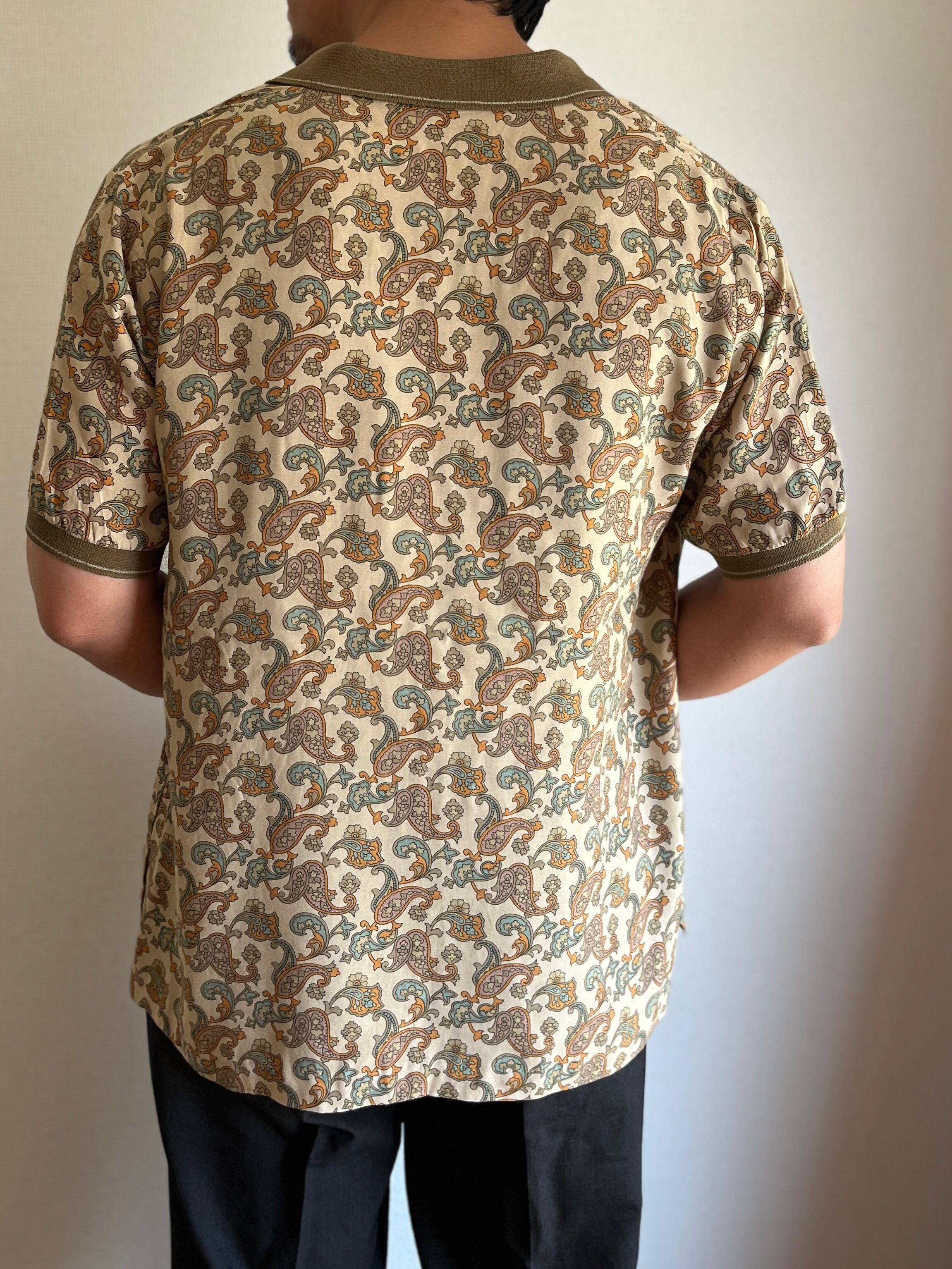 70's vintage paisley×rib collar shirt