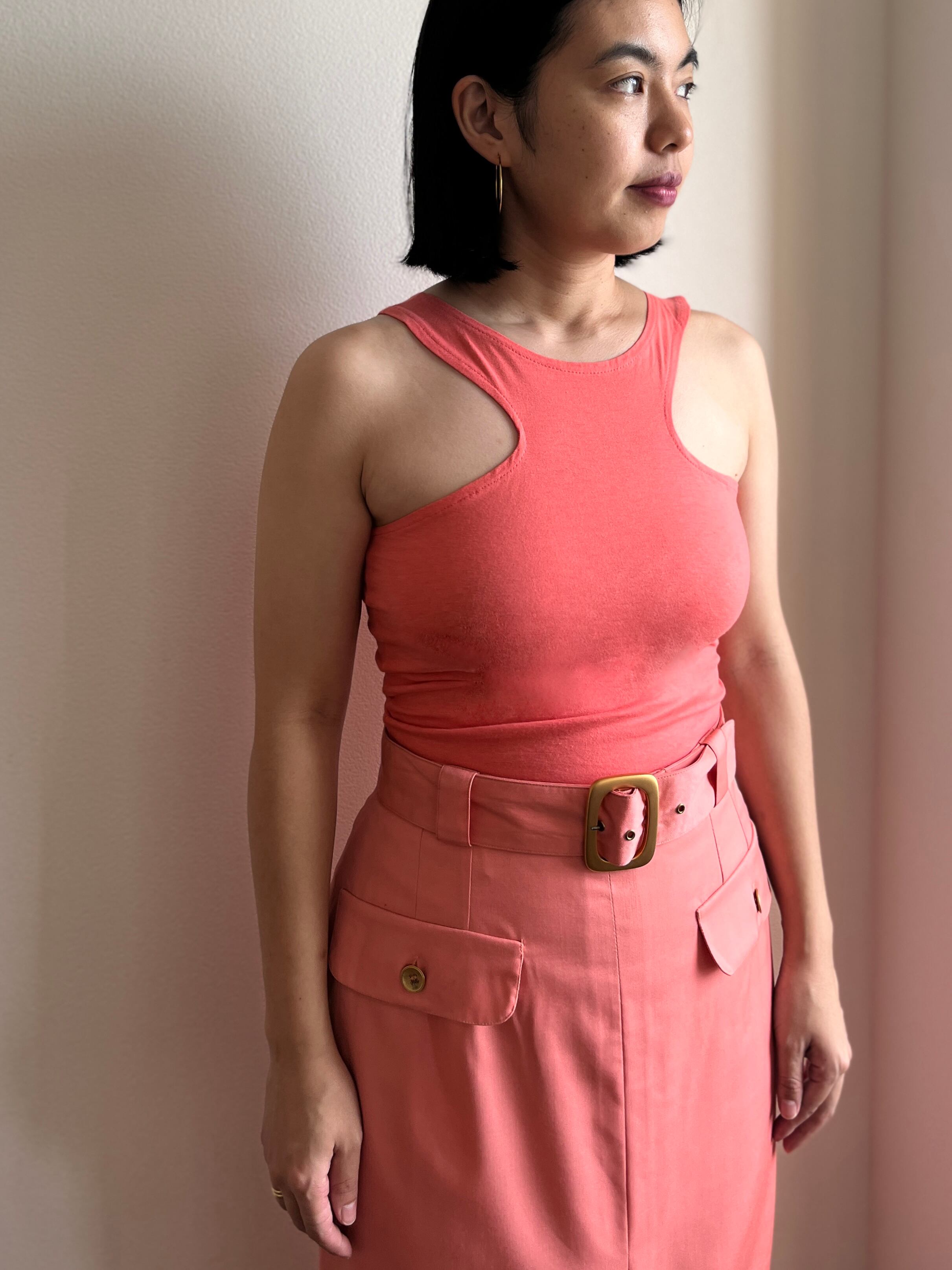 詳細不明ですが、くりの深いX型のアメスリタンクトップ。
