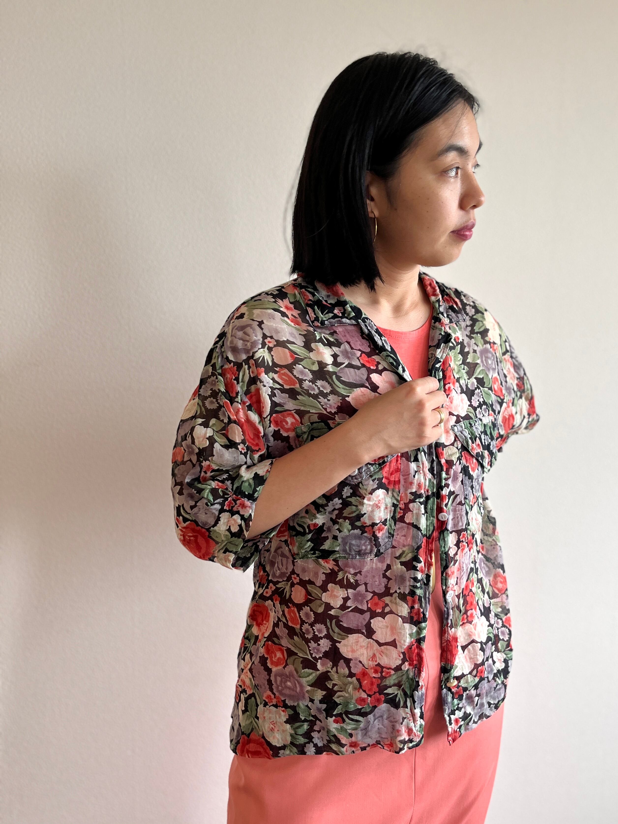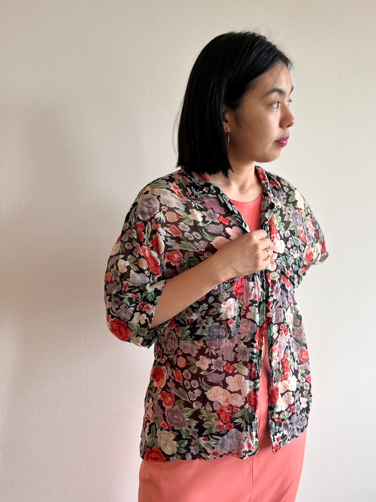 ブラックベースの落ち着いたボタニカルプリントが夏→秋の今の気分にフィットするこちら。