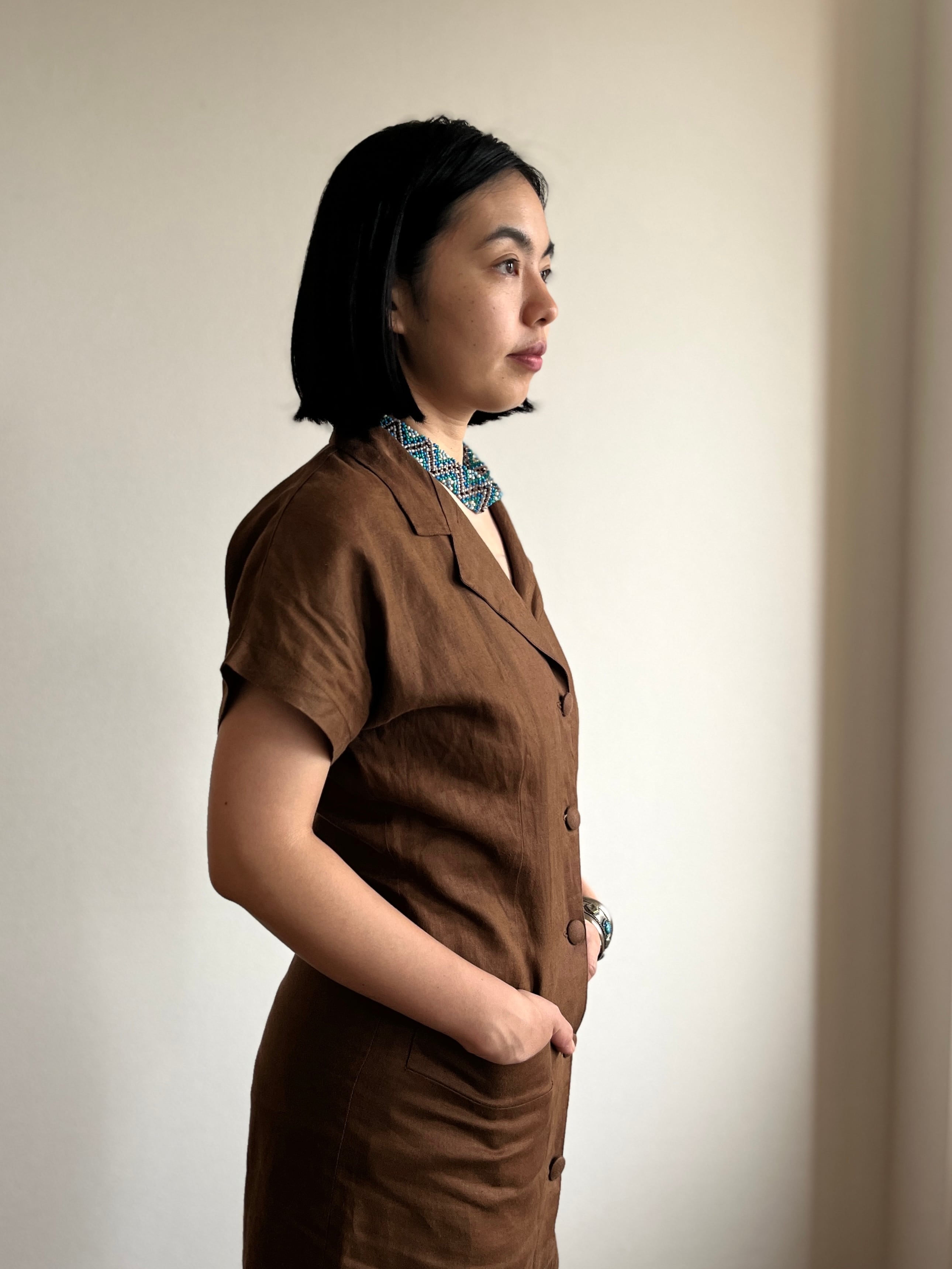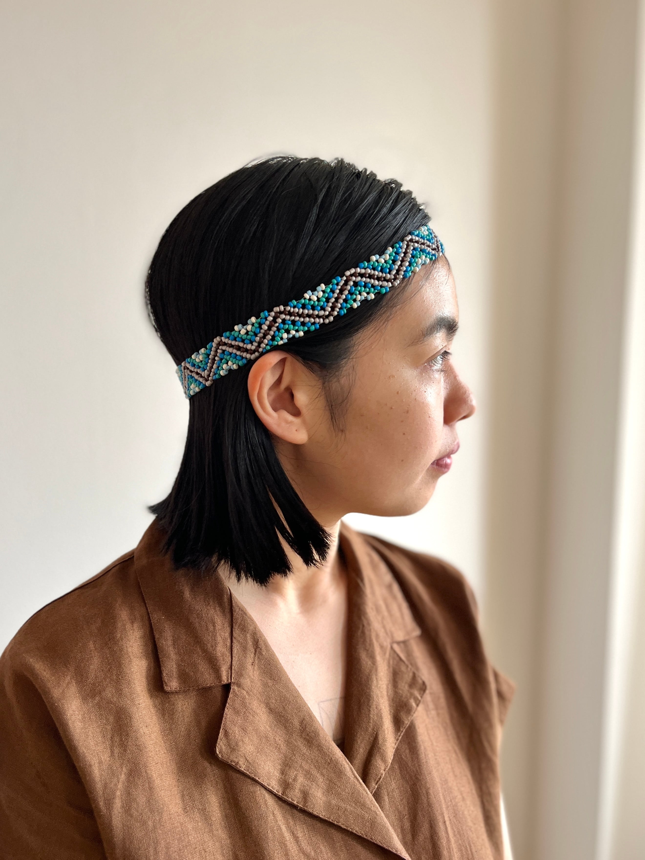 ヘッドピースとしても、チョーカーとしても、帽子のリボンのようにもお使いいただける、発想次第でどんどんスタイリングが広がるビーズアクセサリーです。