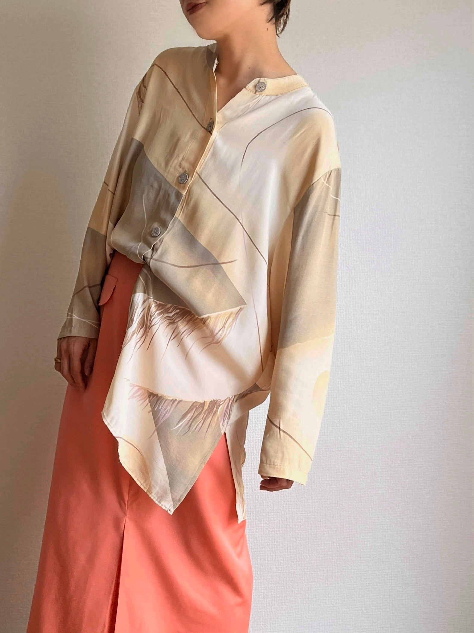 絵画・アート的なプリントを得意とする、"NINO WONG California"のレーヨンシャツ。肌あたりが良くサラッとした着心地です。