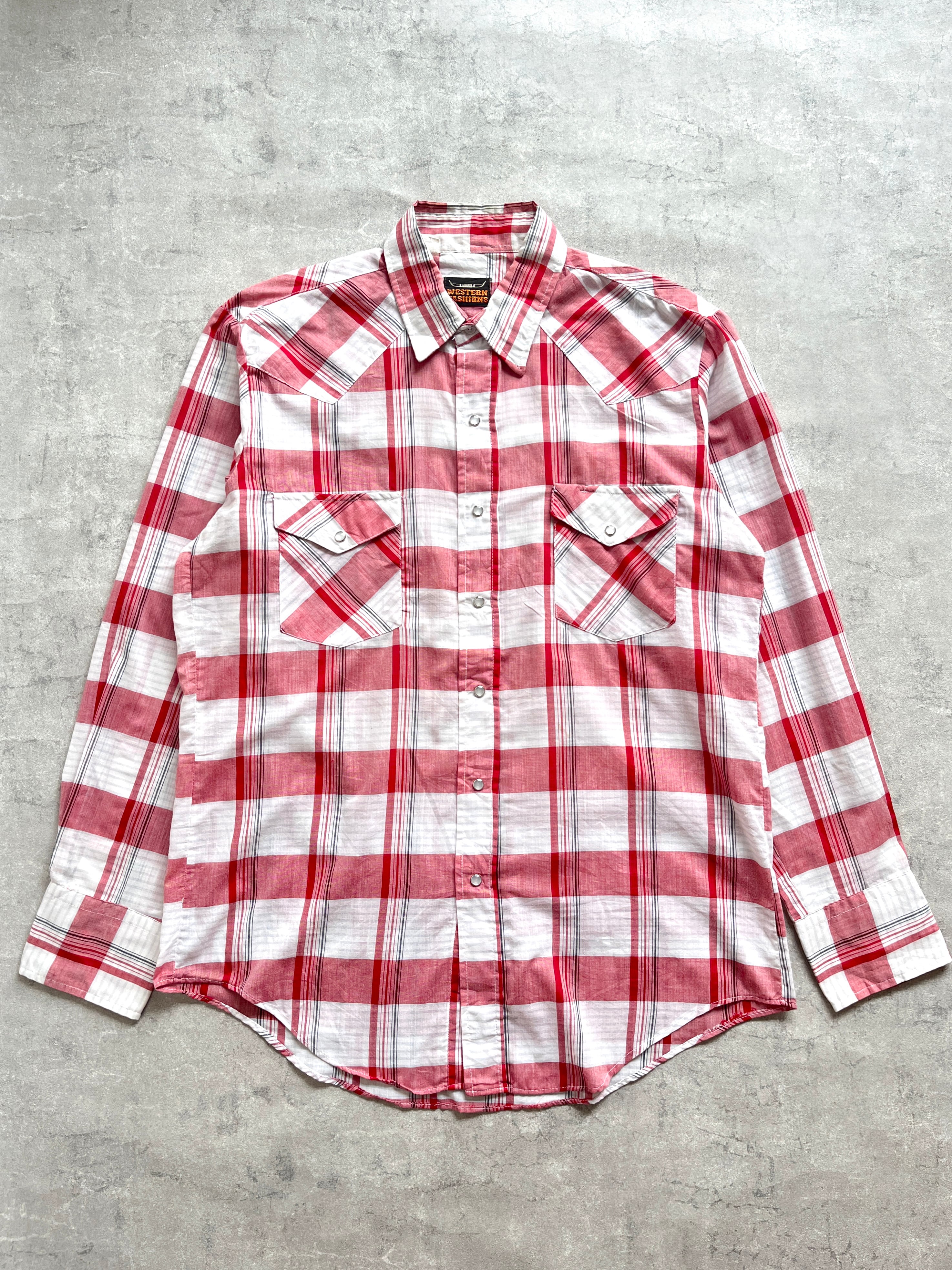 80's "WESTERN FASHIONS" western check shirt made in U.S.A.