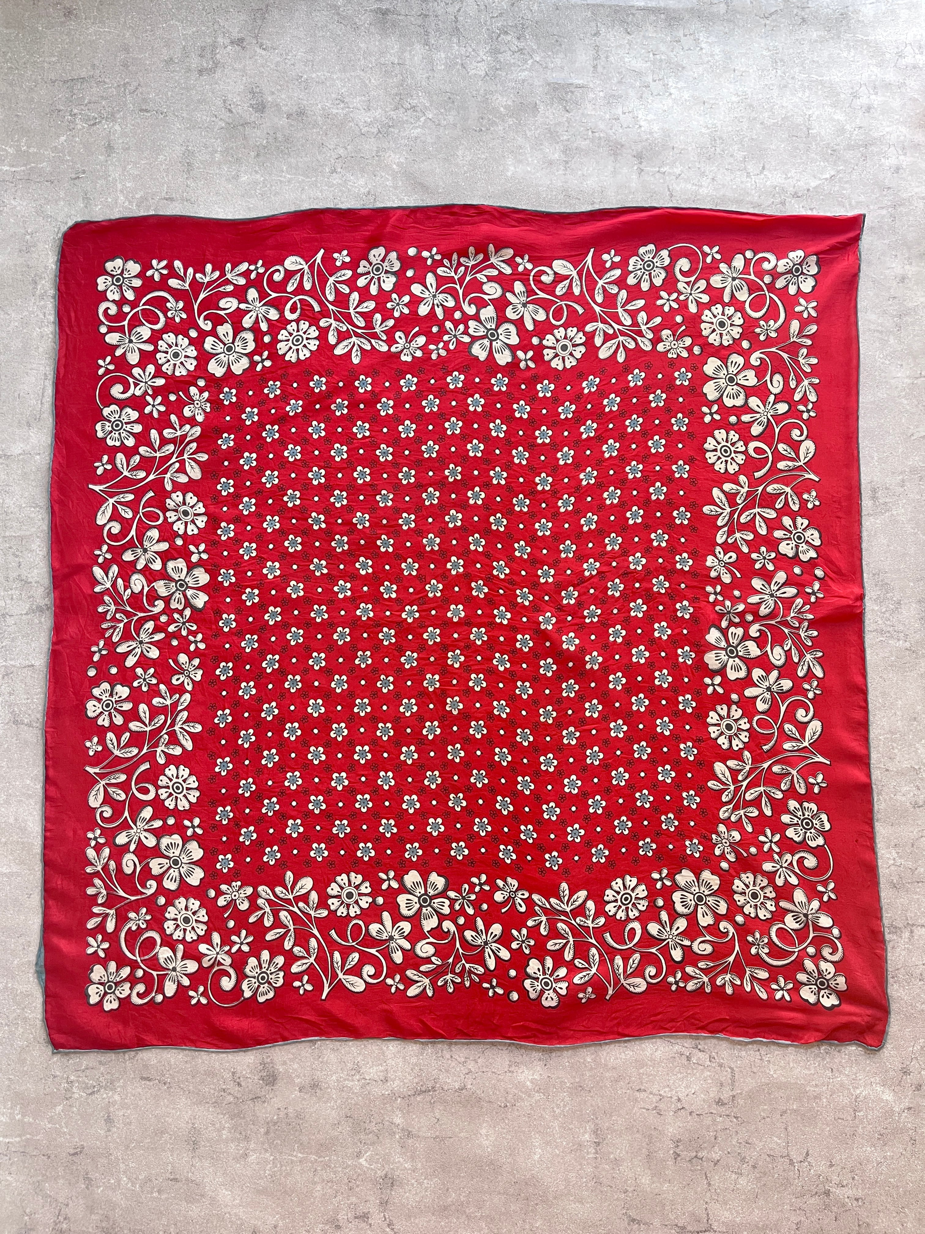 ジョーゼットのような生地と程よい光沢が綺麗なシルクスカーフ。