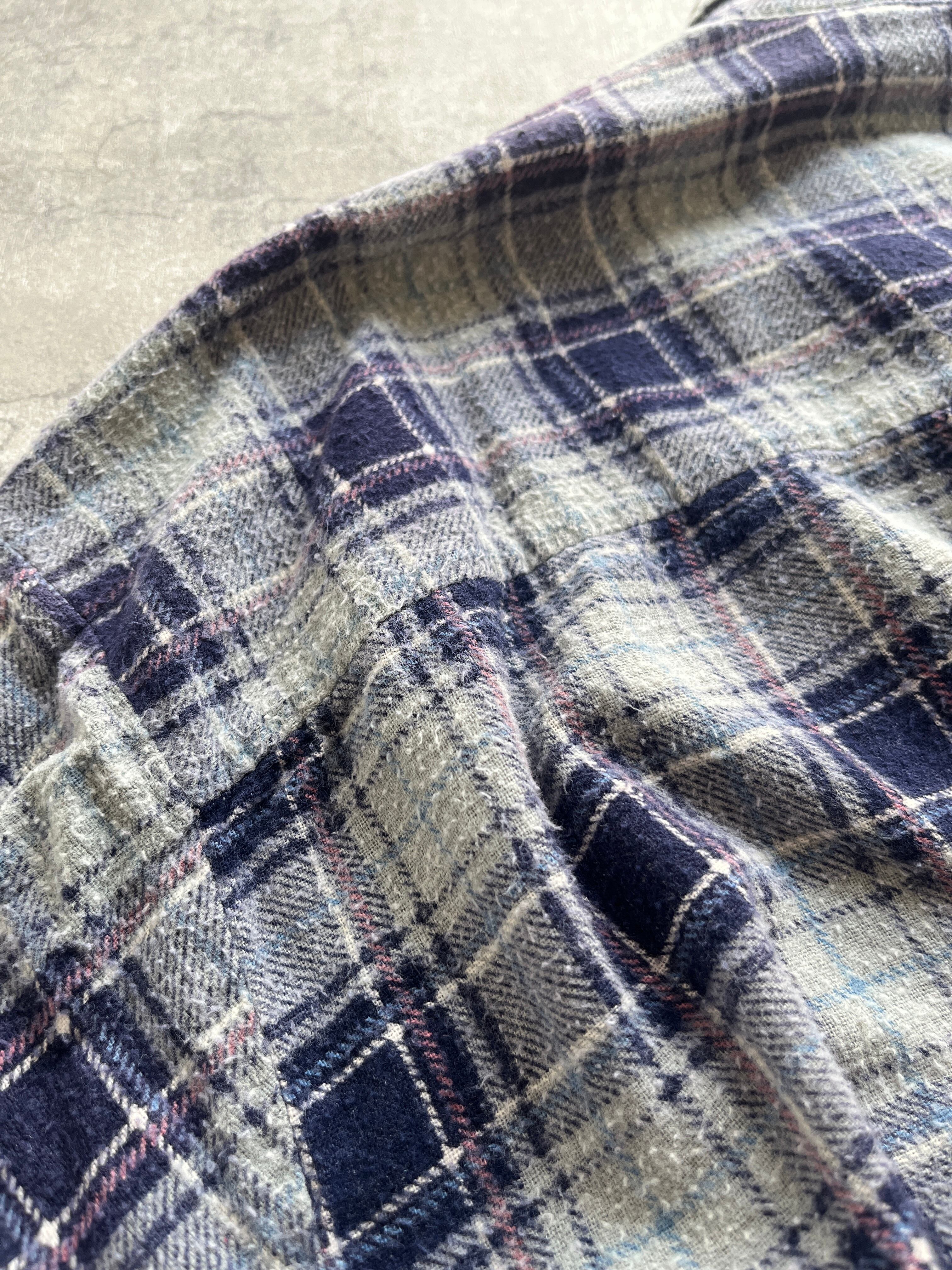 コットン100%の柔らかくくたっとした生地感と、絶妙なライン使いのチェックが溜まりません。