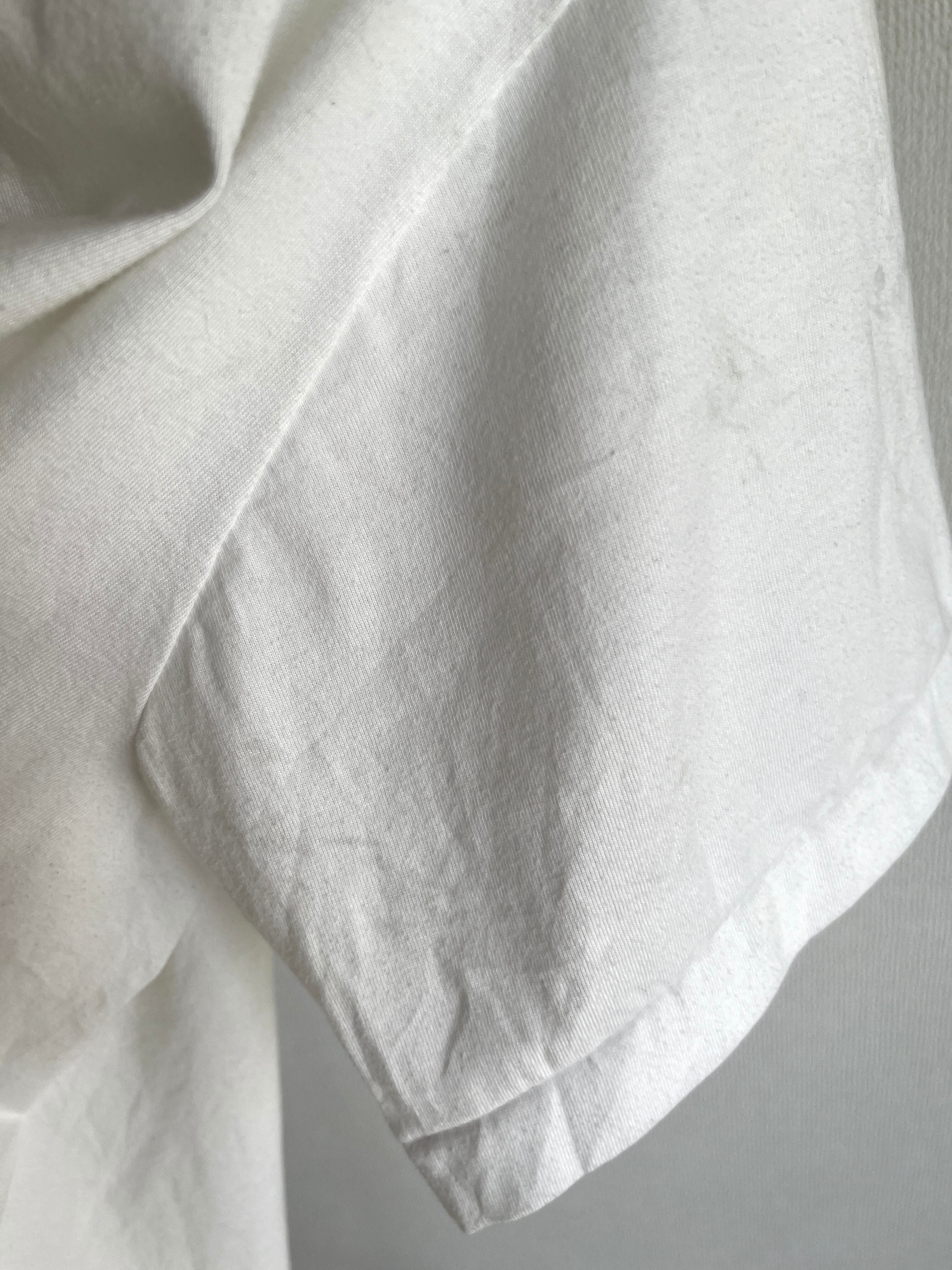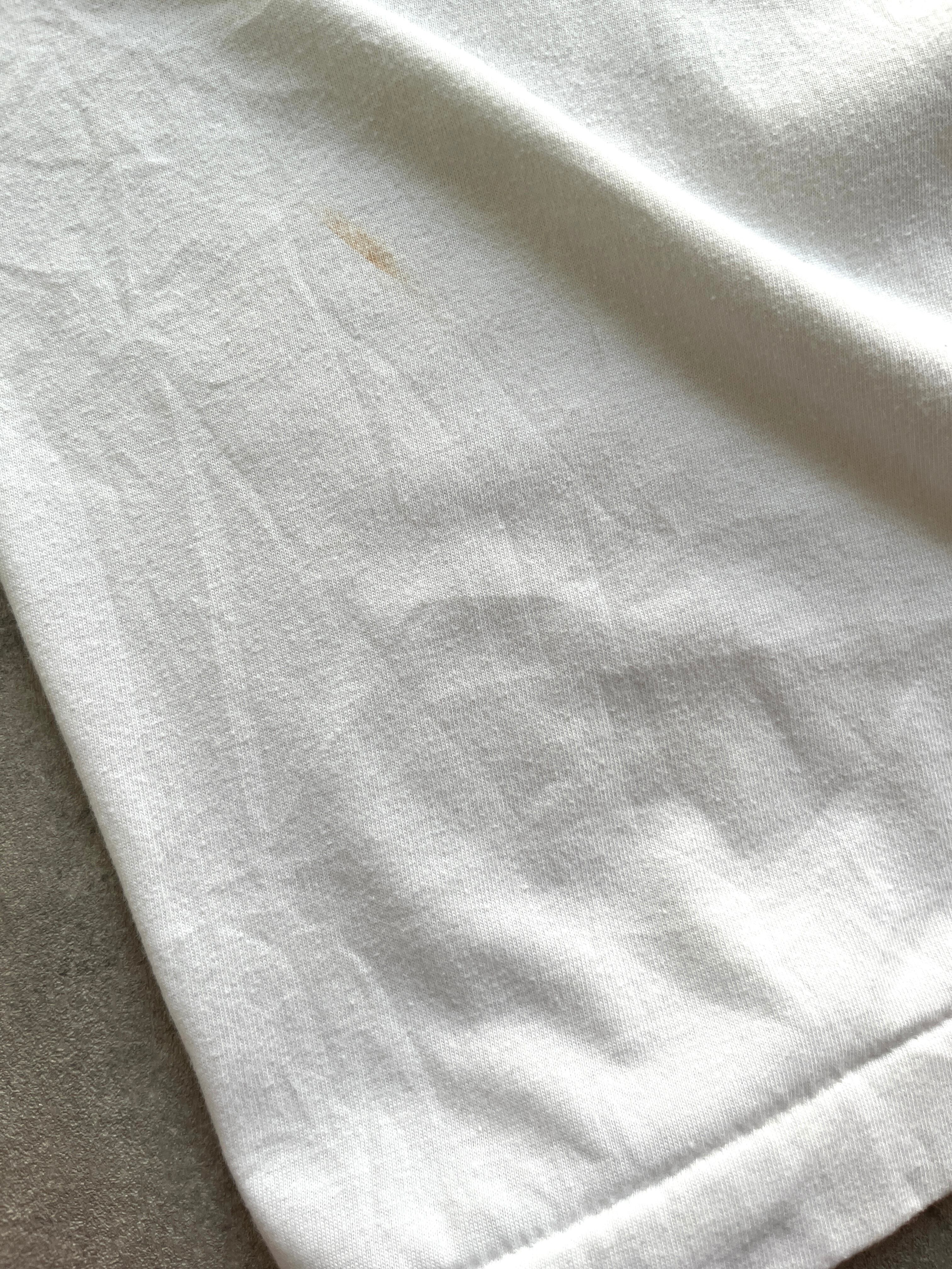 Other: 左袖に薄い移染(写真7枚目参照)と前身頃の右下に染みがございます(写真8枚目参照)。