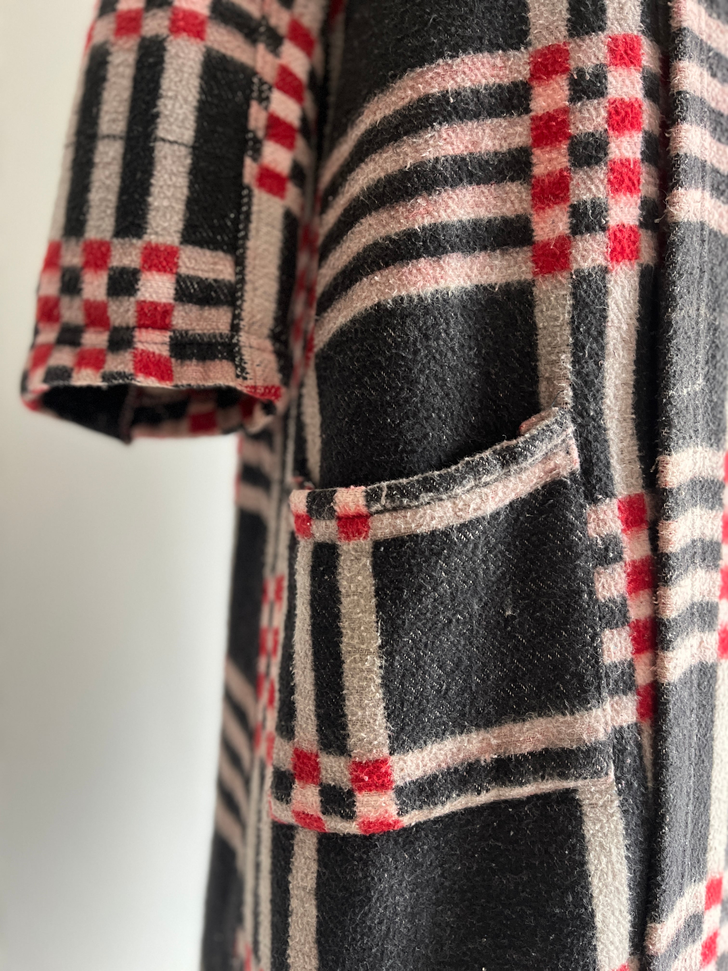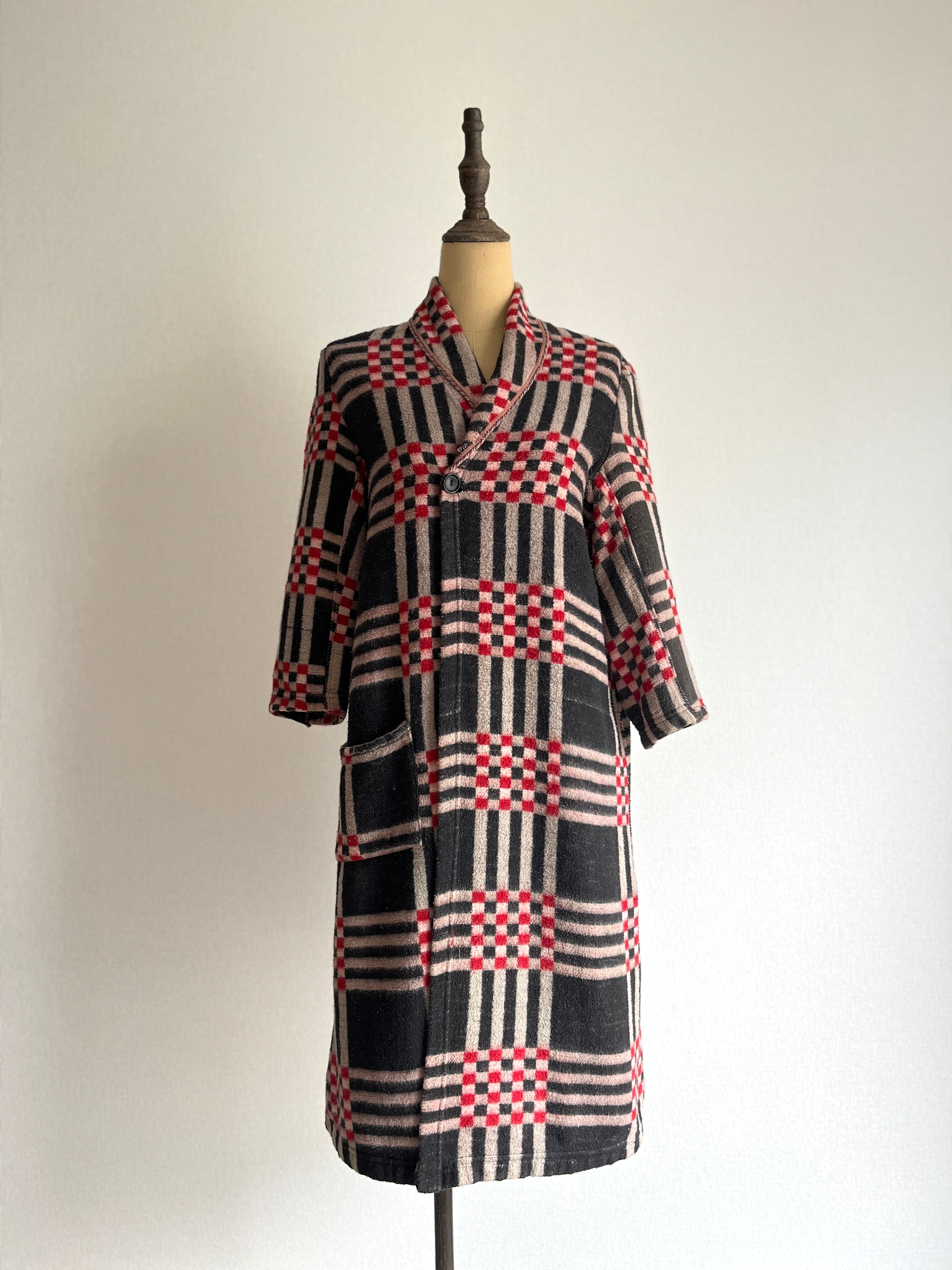 60年代のガウンコート。ナイト用かどうかは不明ですが、現行品ではまず出逢うことのない織のチェックパターンがとても繊細で、アートピースのような一着。
