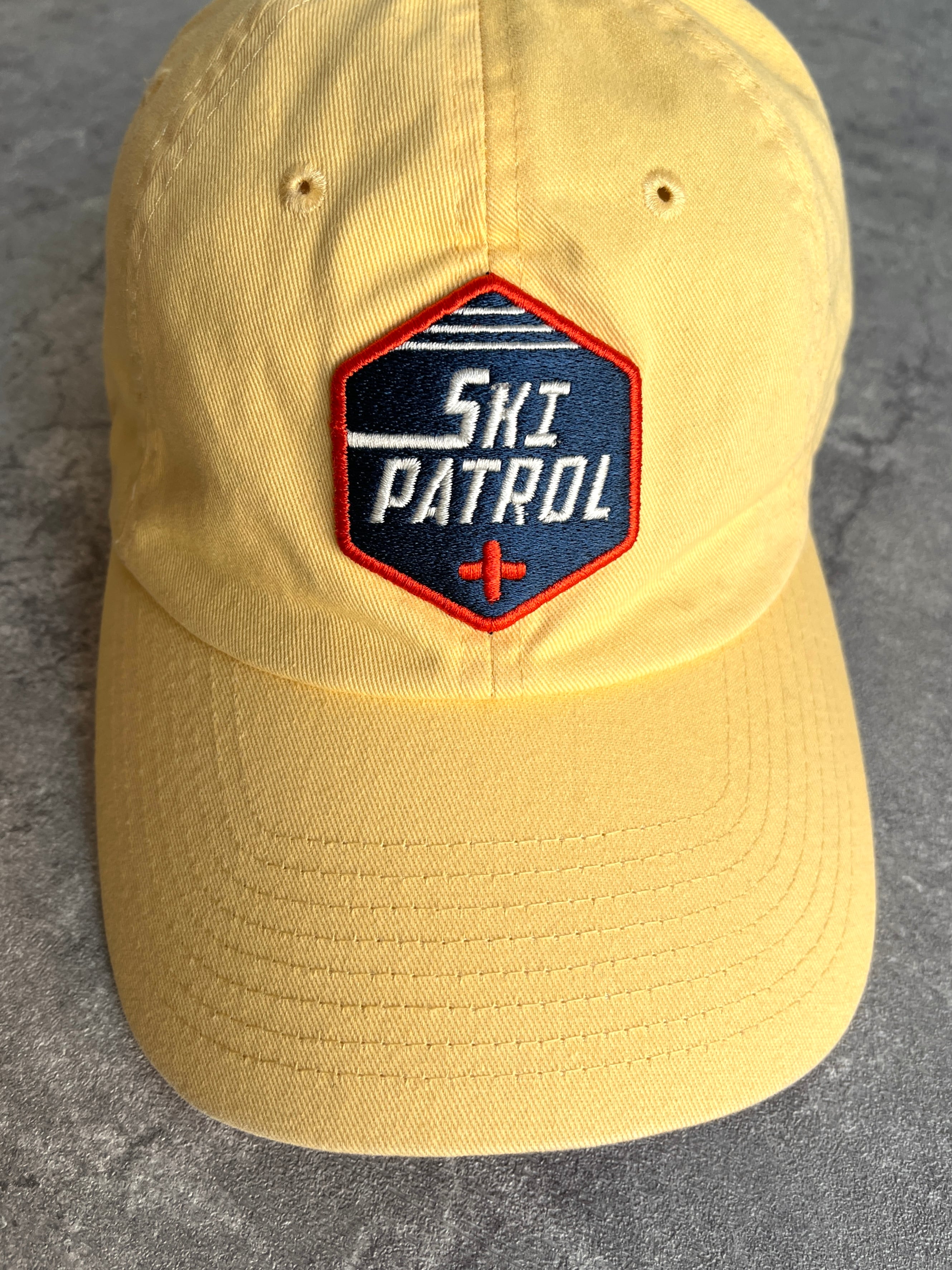 なかなか出ないクリームイエローのカラーが絶妙なこちらは、冬にぴったりの"SKI PATROL"のおそらく従業員用のキャップ。パッチデザインも最高です。