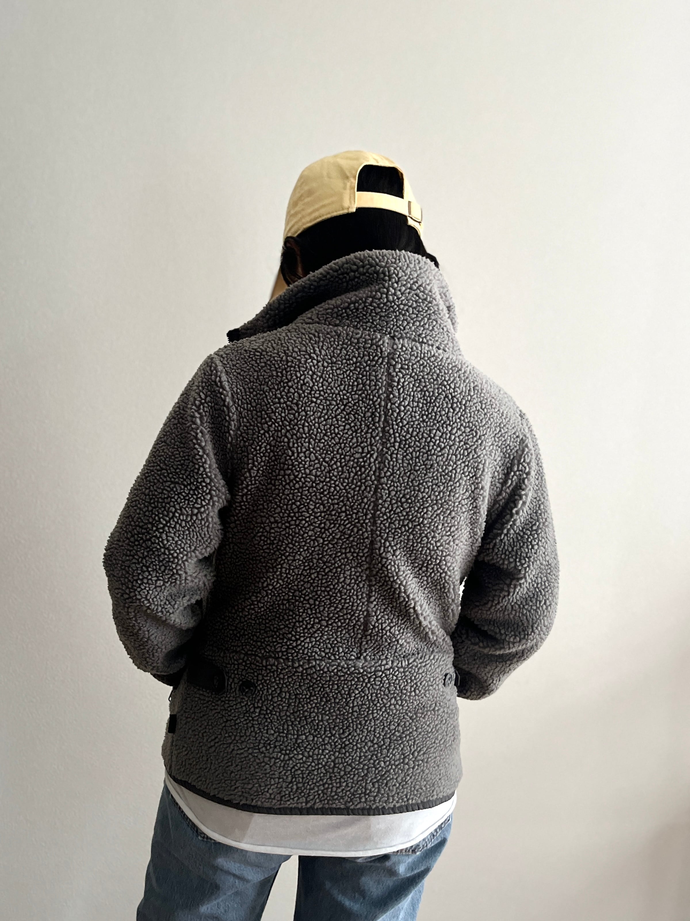 パタゴニア・レディースSサイズのフリースジャケット。ウエストにアジャストタブ付き。
