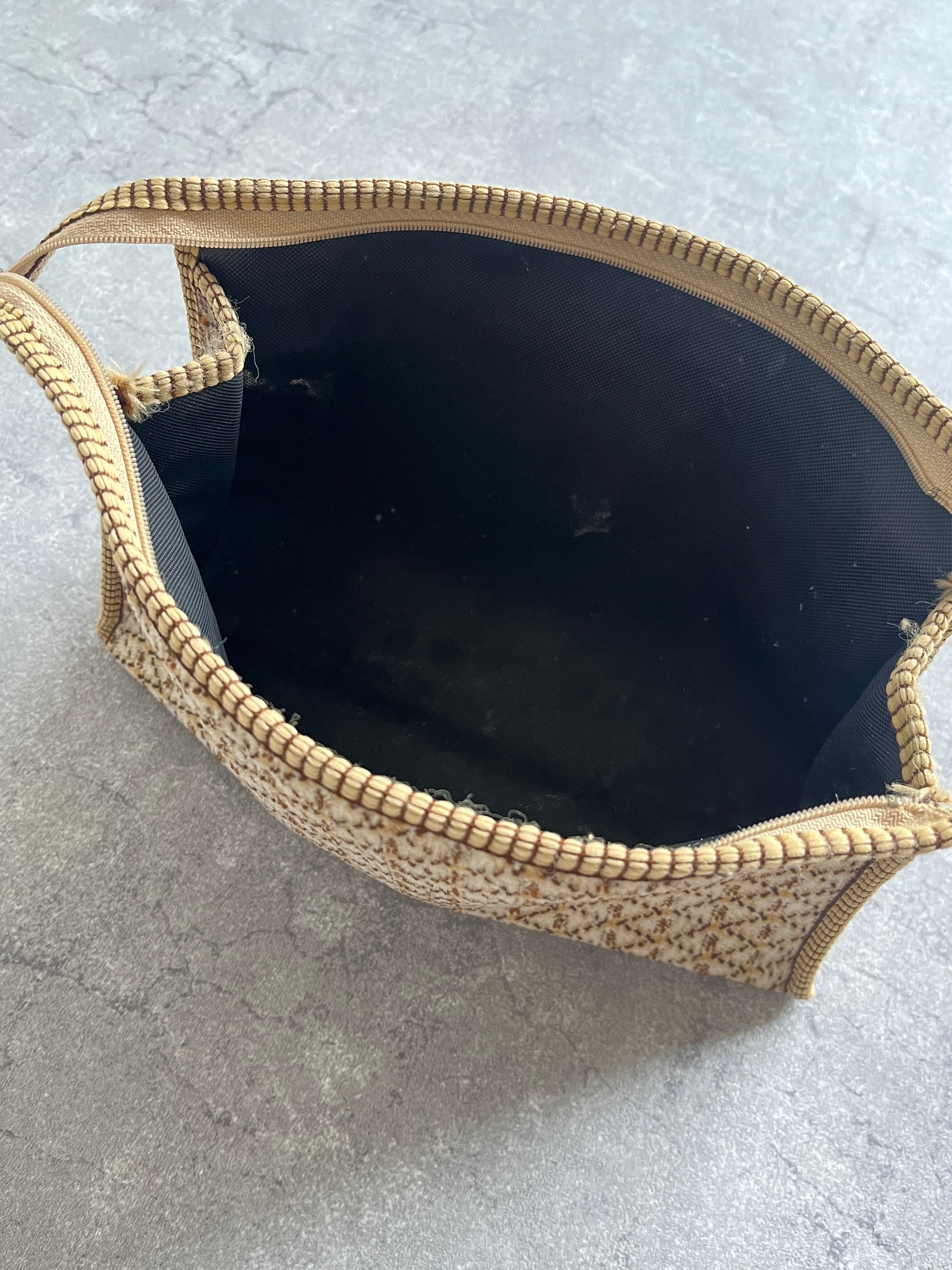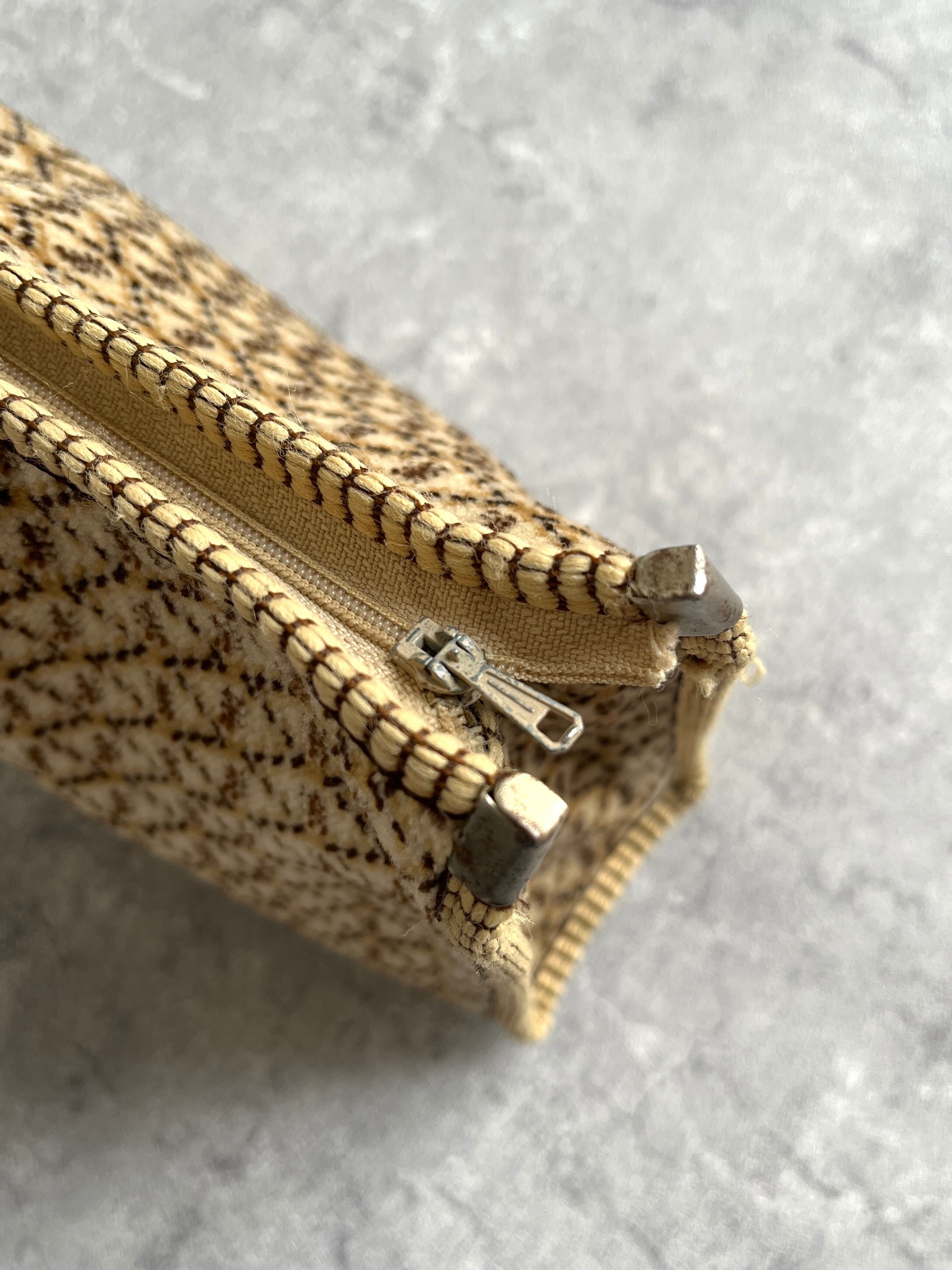 モノグラム調のこちらのポーチはイタリアのもの。ジップから70-80年代と推測されます。