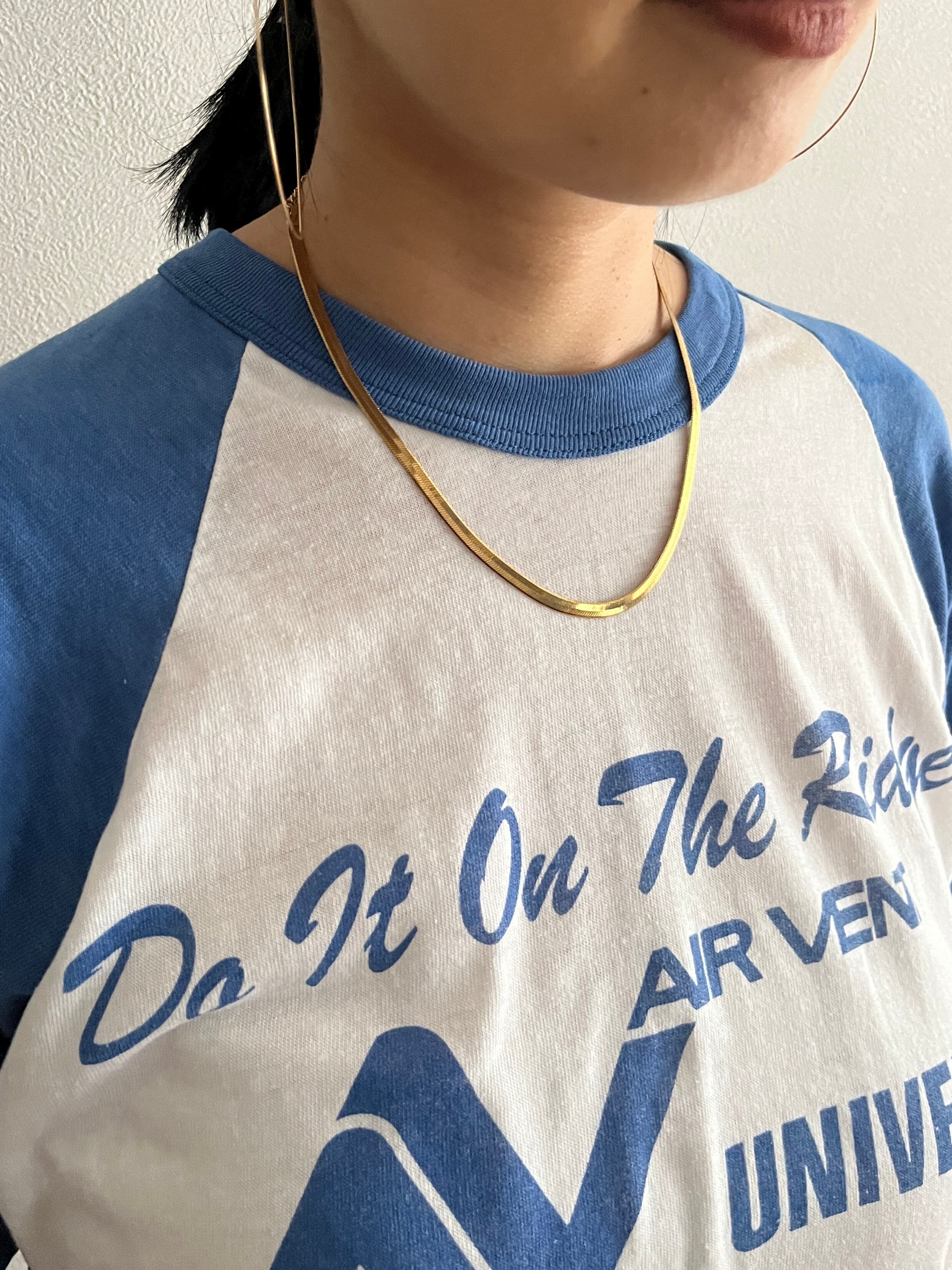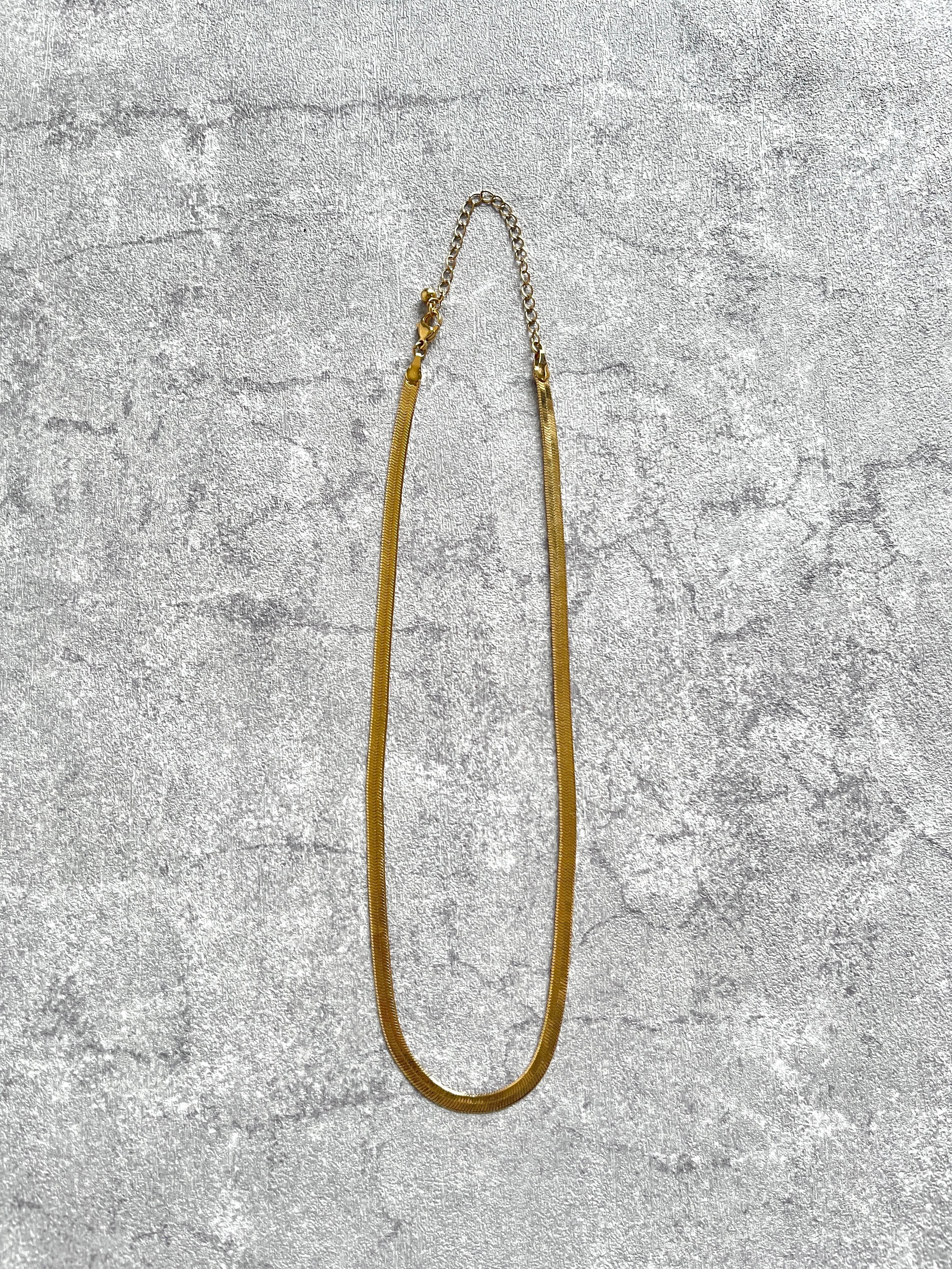 イミテーションでも、ここまで細かいスネークチェーンと綺麗な光沢のコーティングであれば...と買いつけた1点。