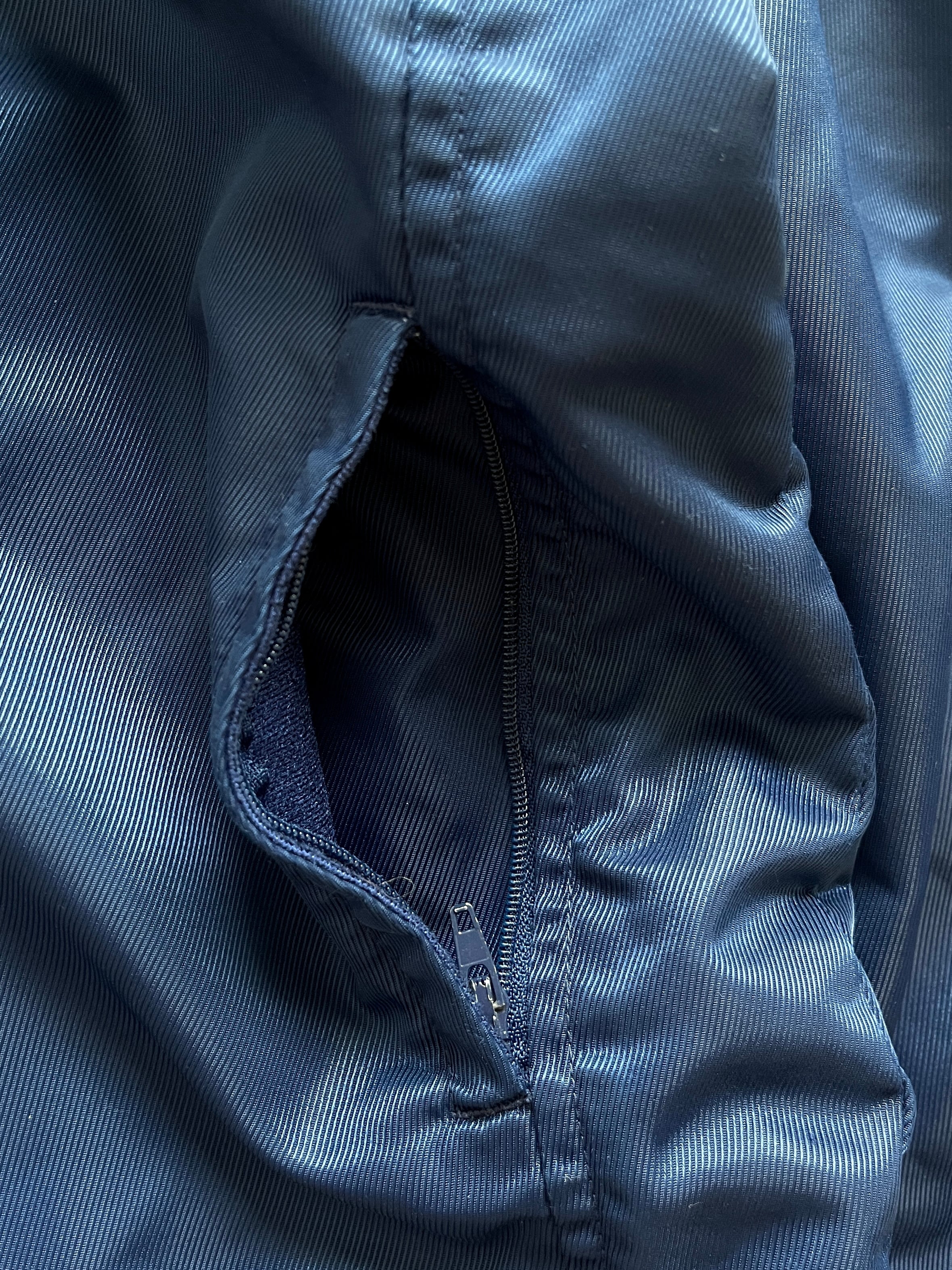 ポリですが、コットンのような裏地の杢目のグレーも良く、ロゴ入りのZIPのテープもどこか懐かしい雰囲気。