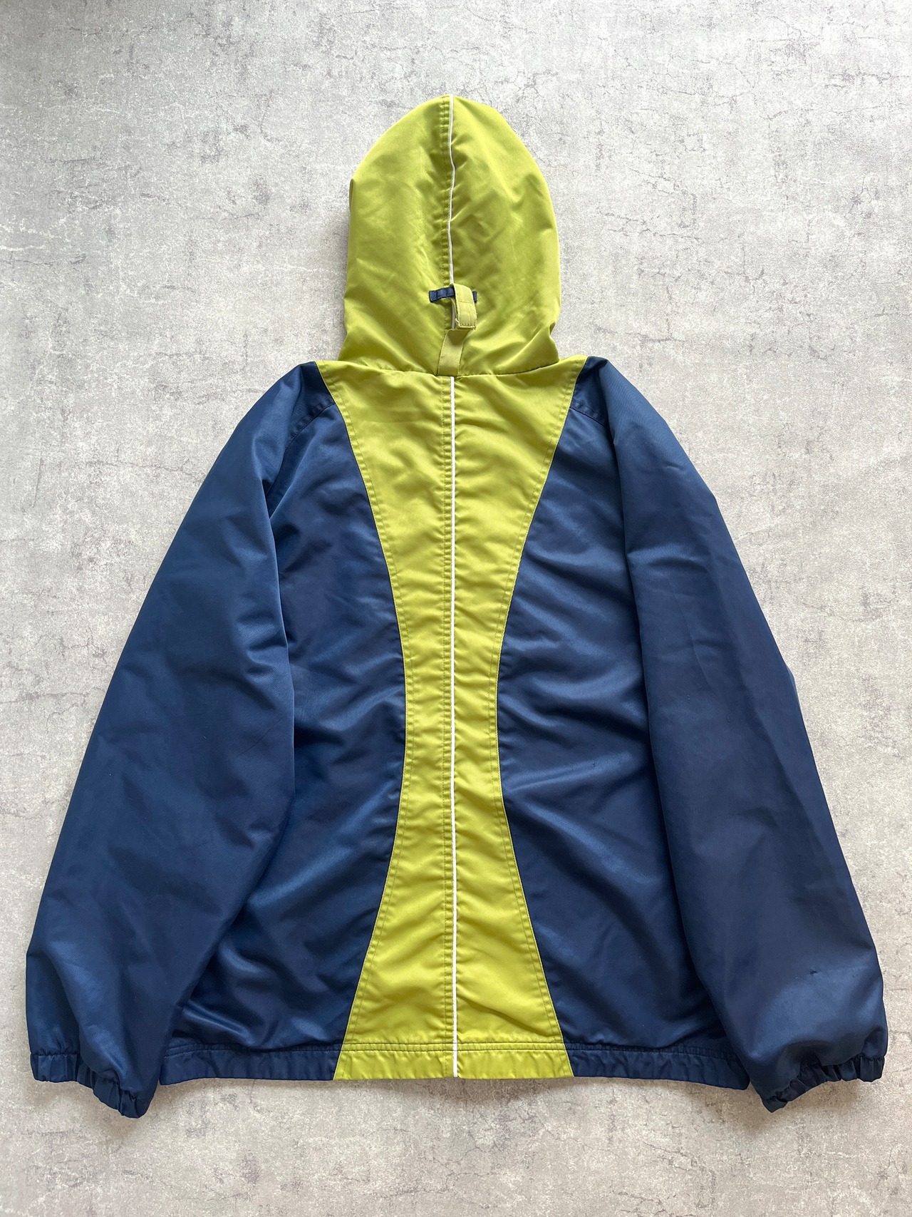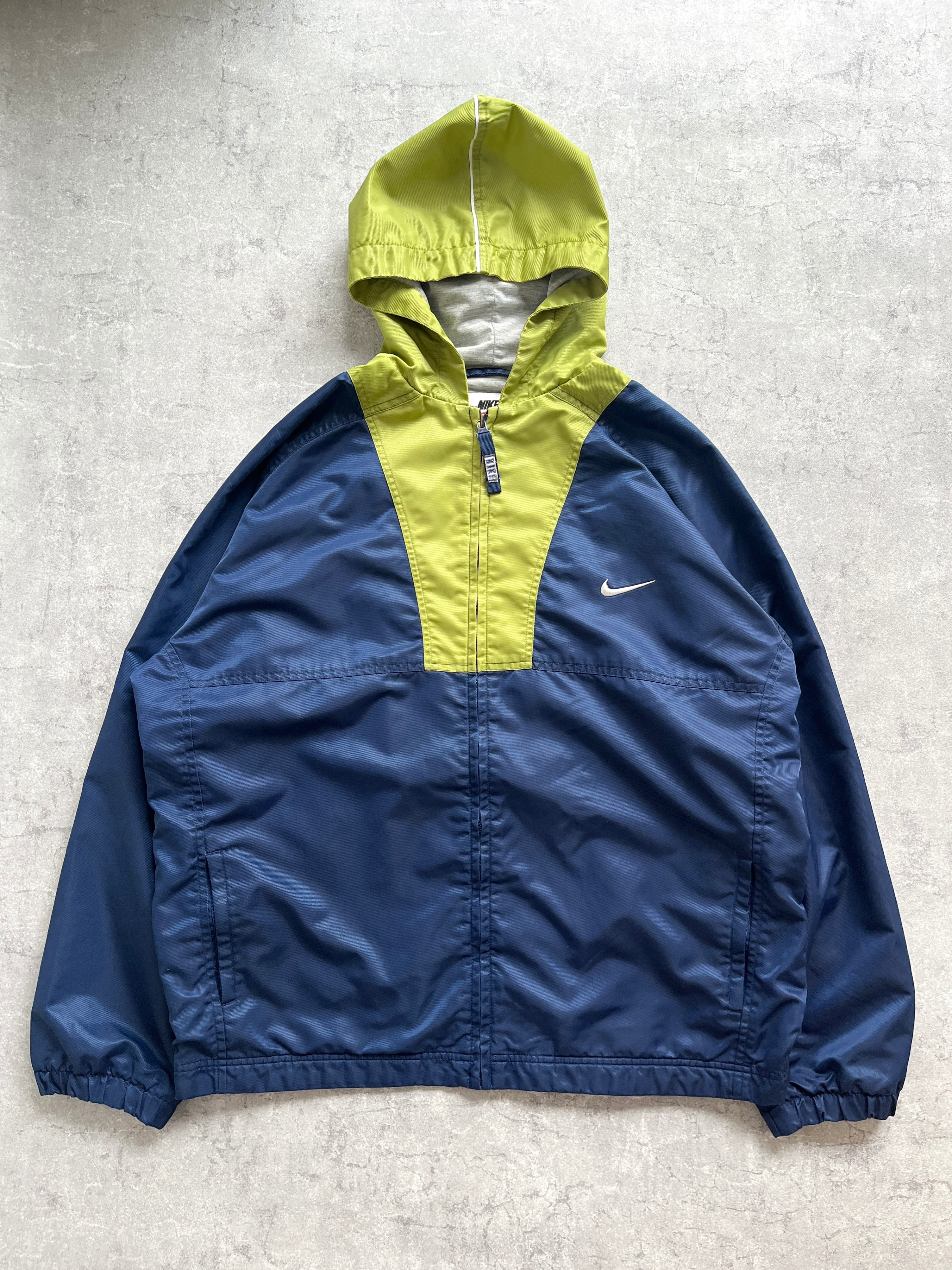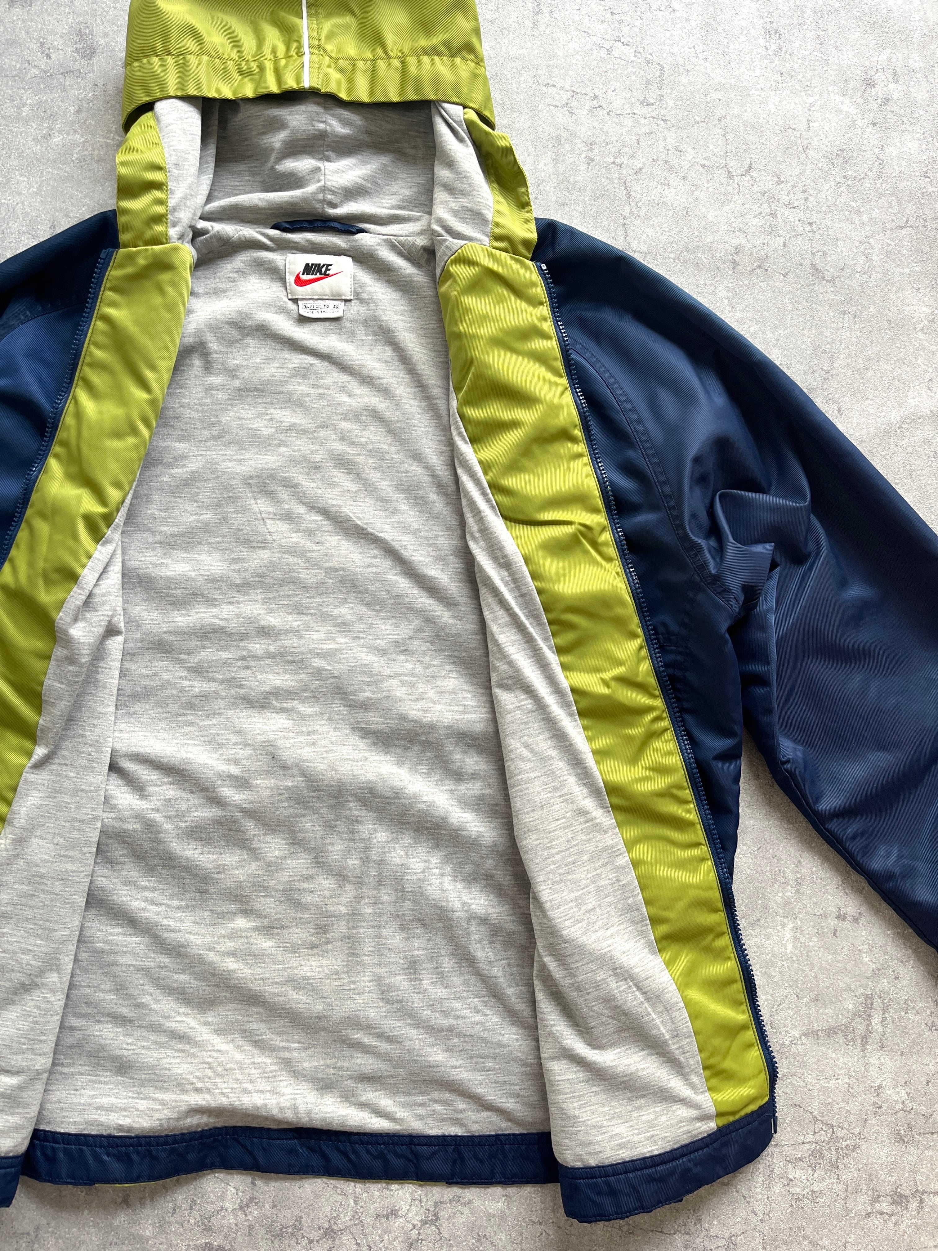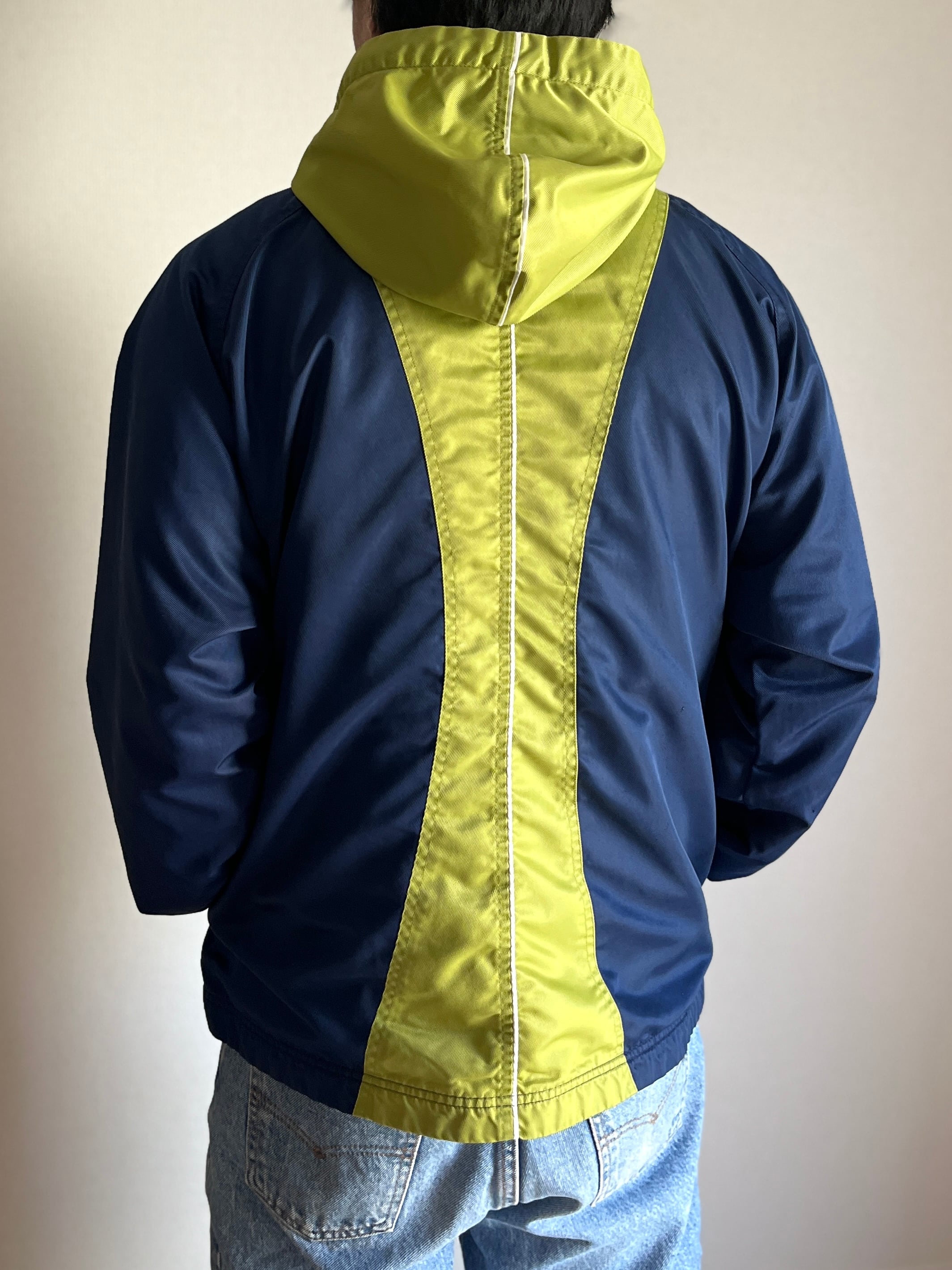 背中のパイピングまで手の込んだライン切り替えが面白い、NIKEのナイロンツイルジャケット。