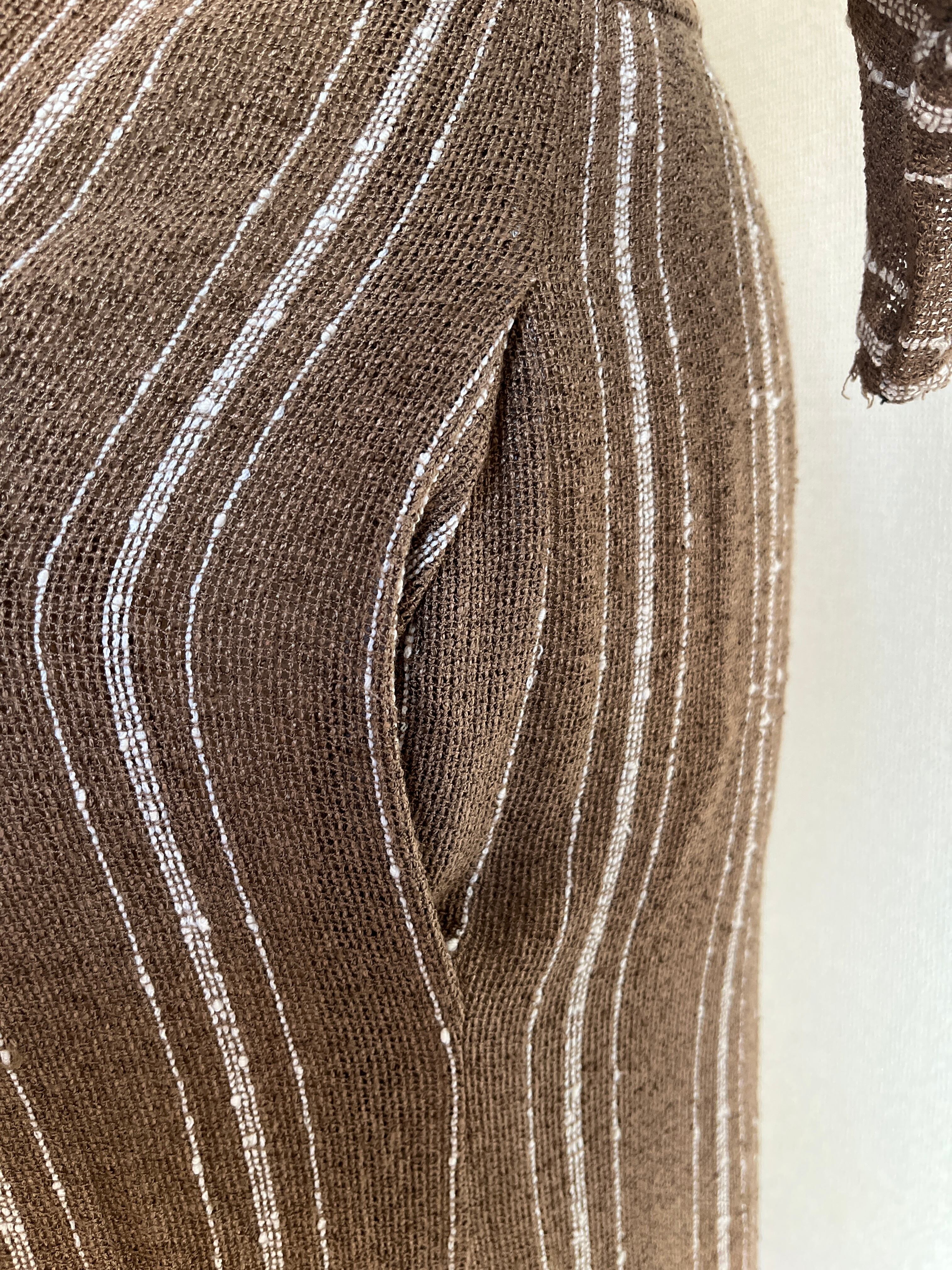 リネンに近い化繊の糸?で平織りされた、軽やかな一着です。