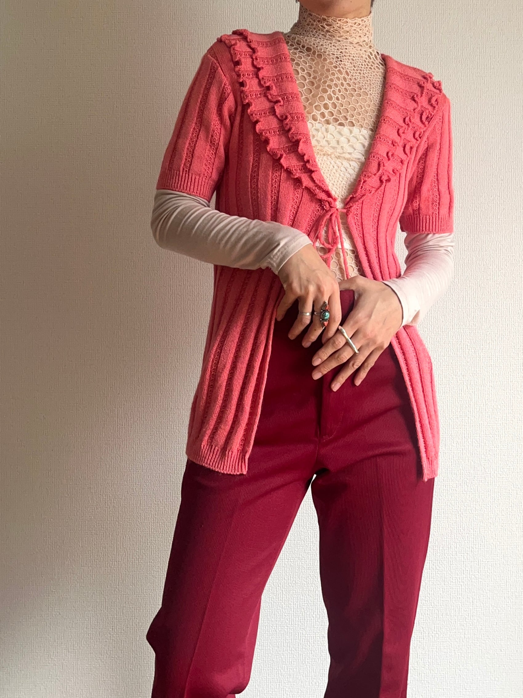 90's "Charlotte Gold" ruffled short sleeve cardigan