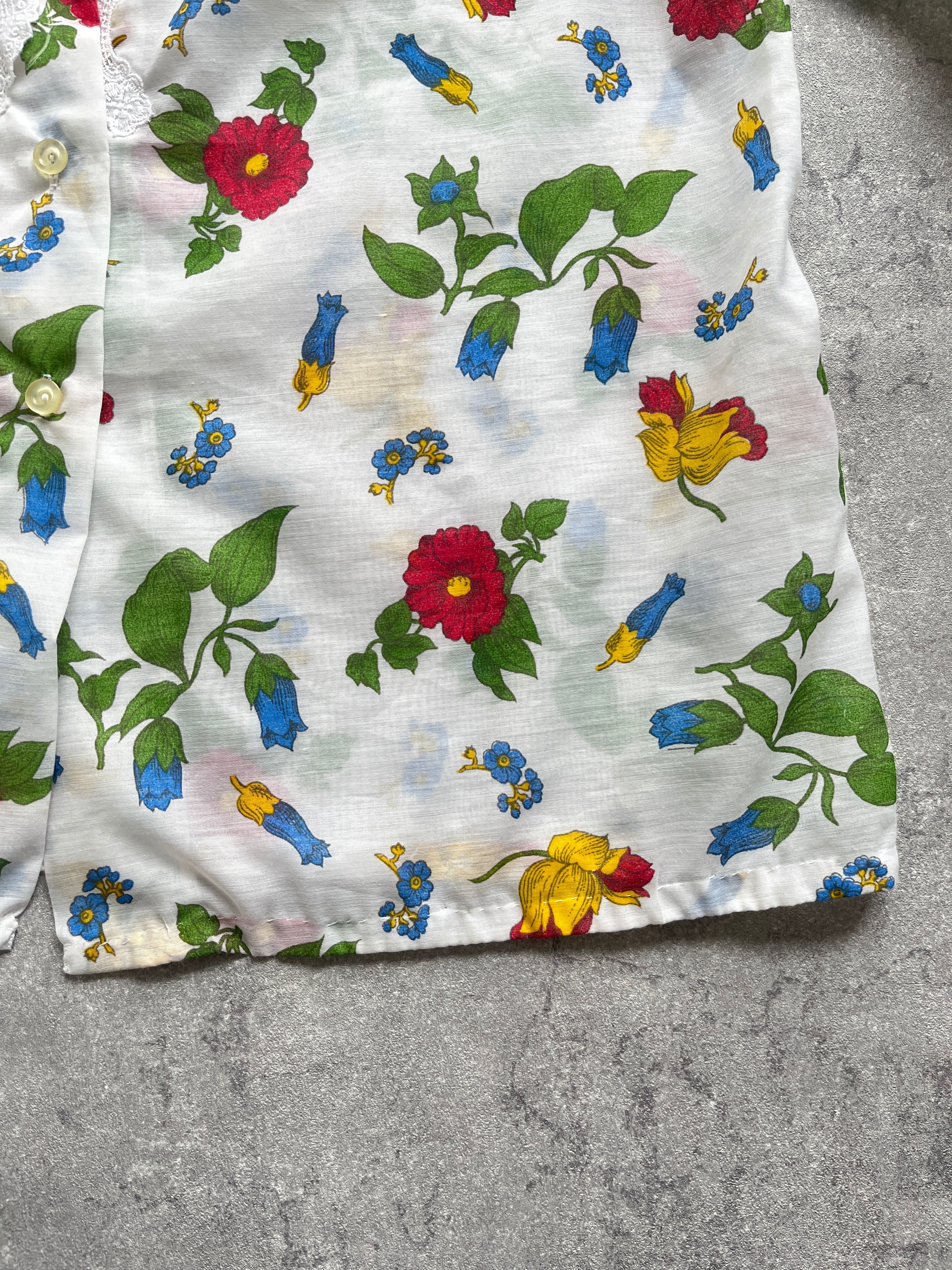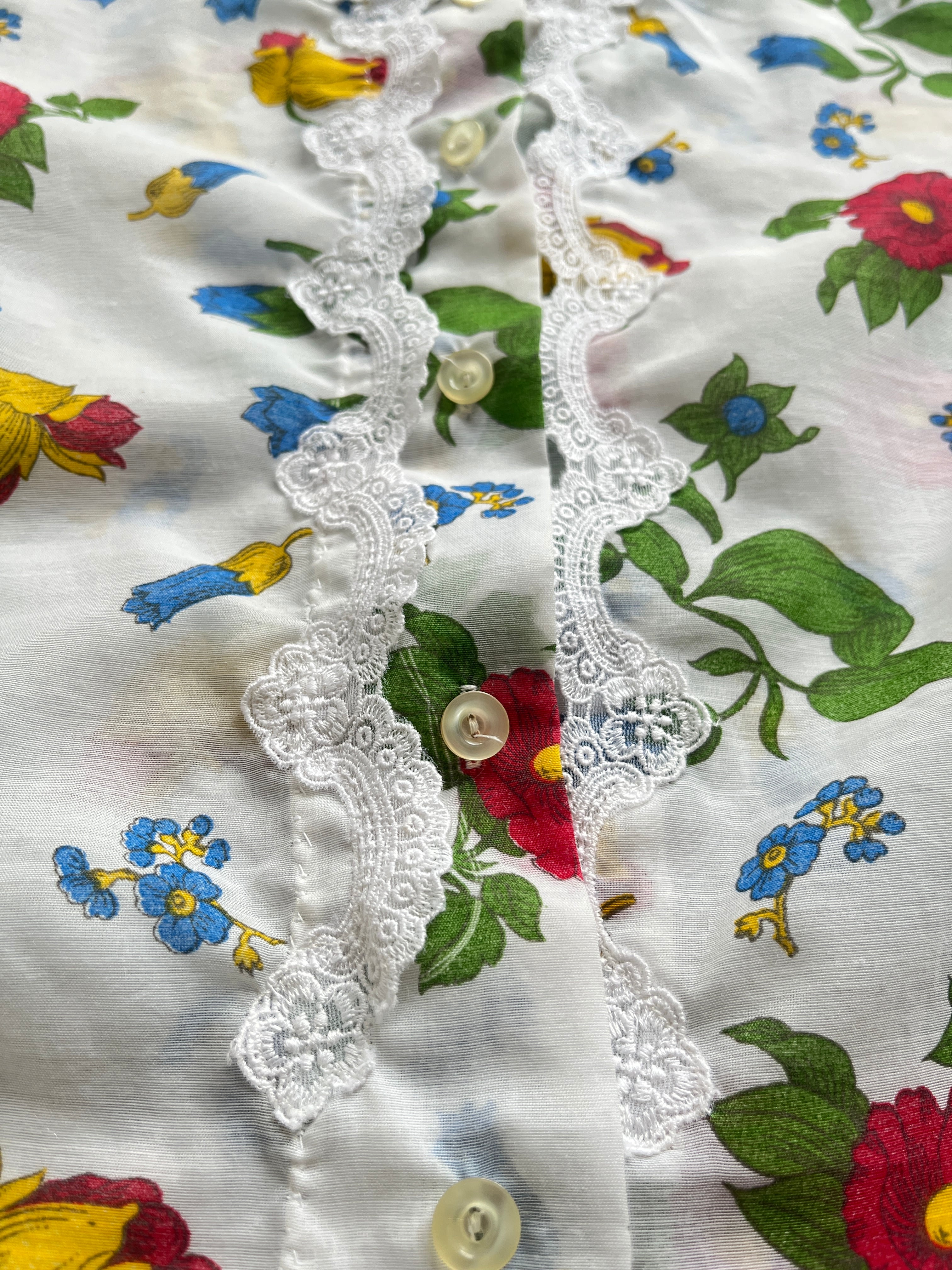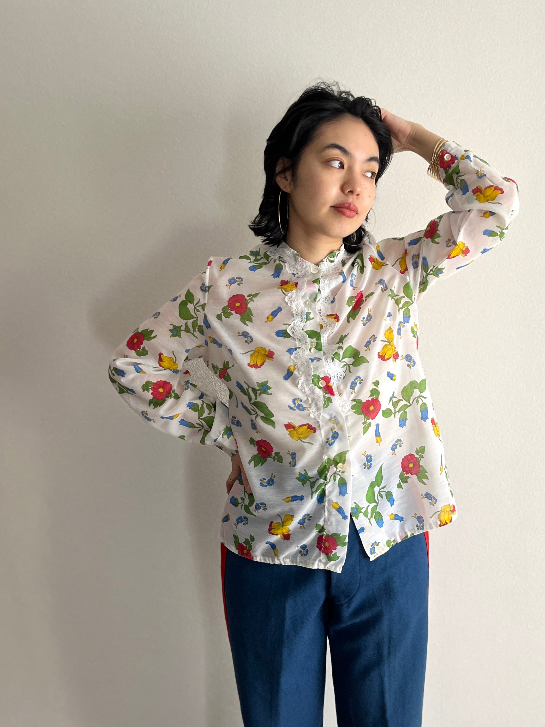 70's vintage "ANNA" lace×floral shirt made in Italy