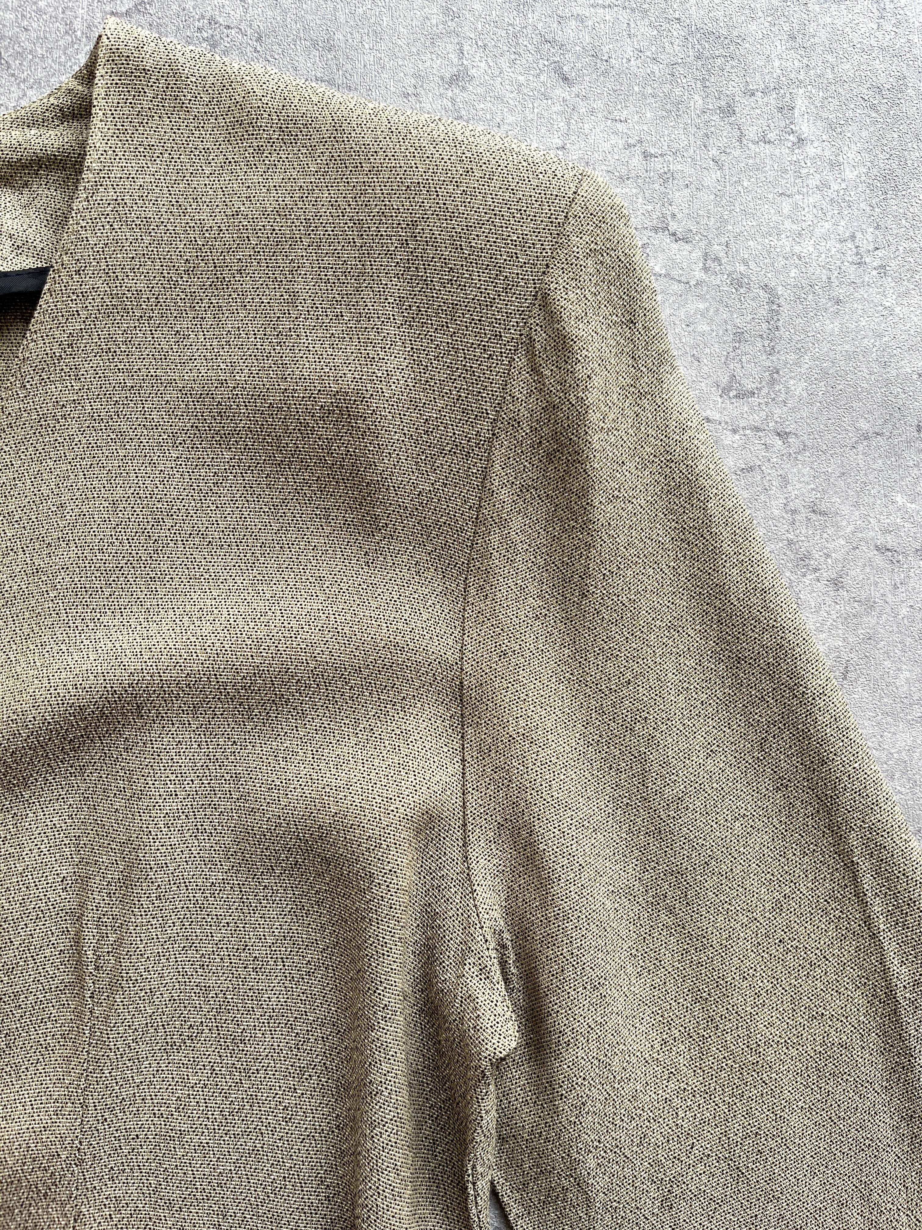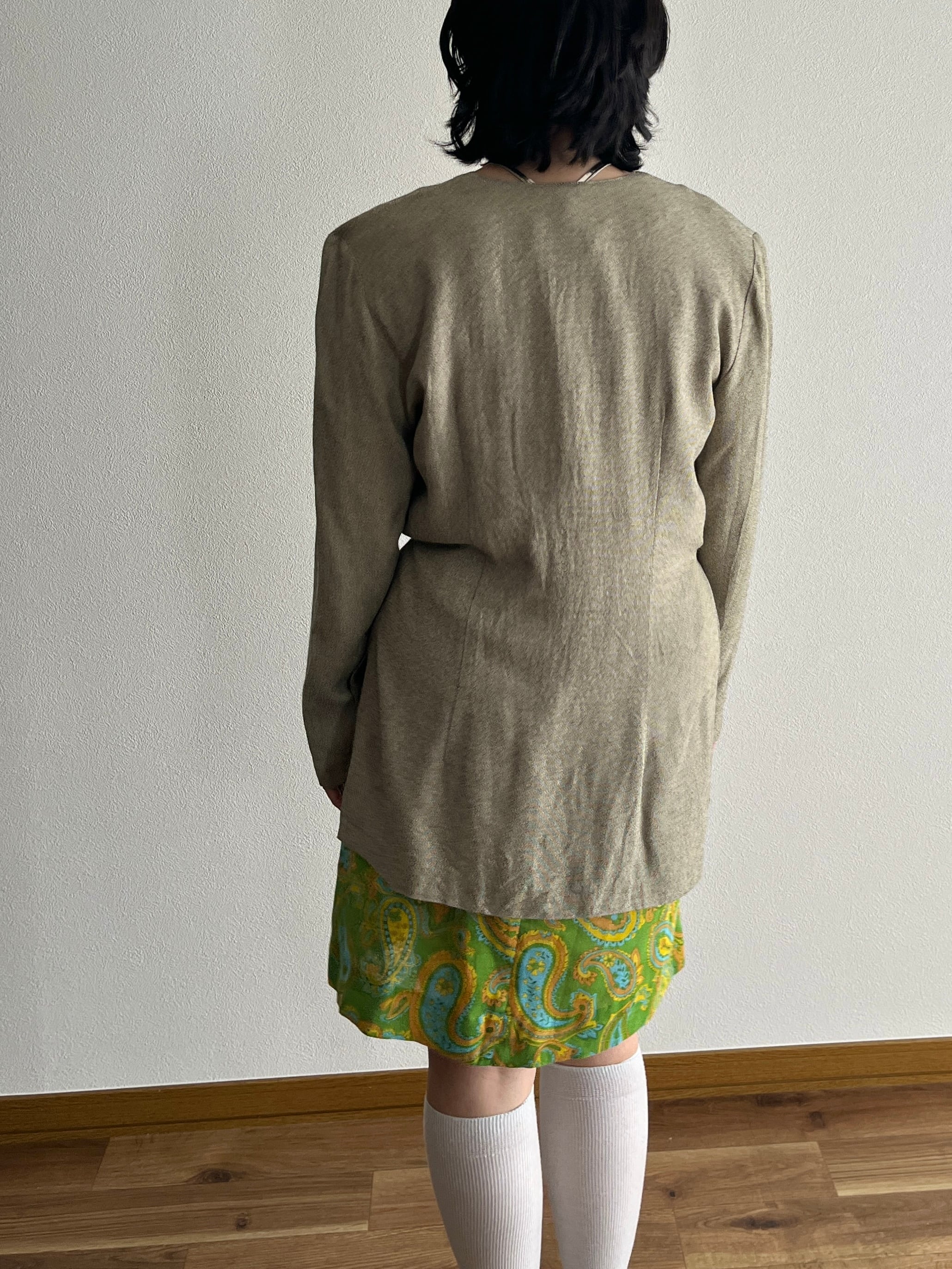 キュビズム柄のブルゾンやファイヤーマンジャケットなど、80年代〜90年代ごろまで幅広いアイテムを手掛けた、"M.J.Carroll" のノーカラージャケットです。