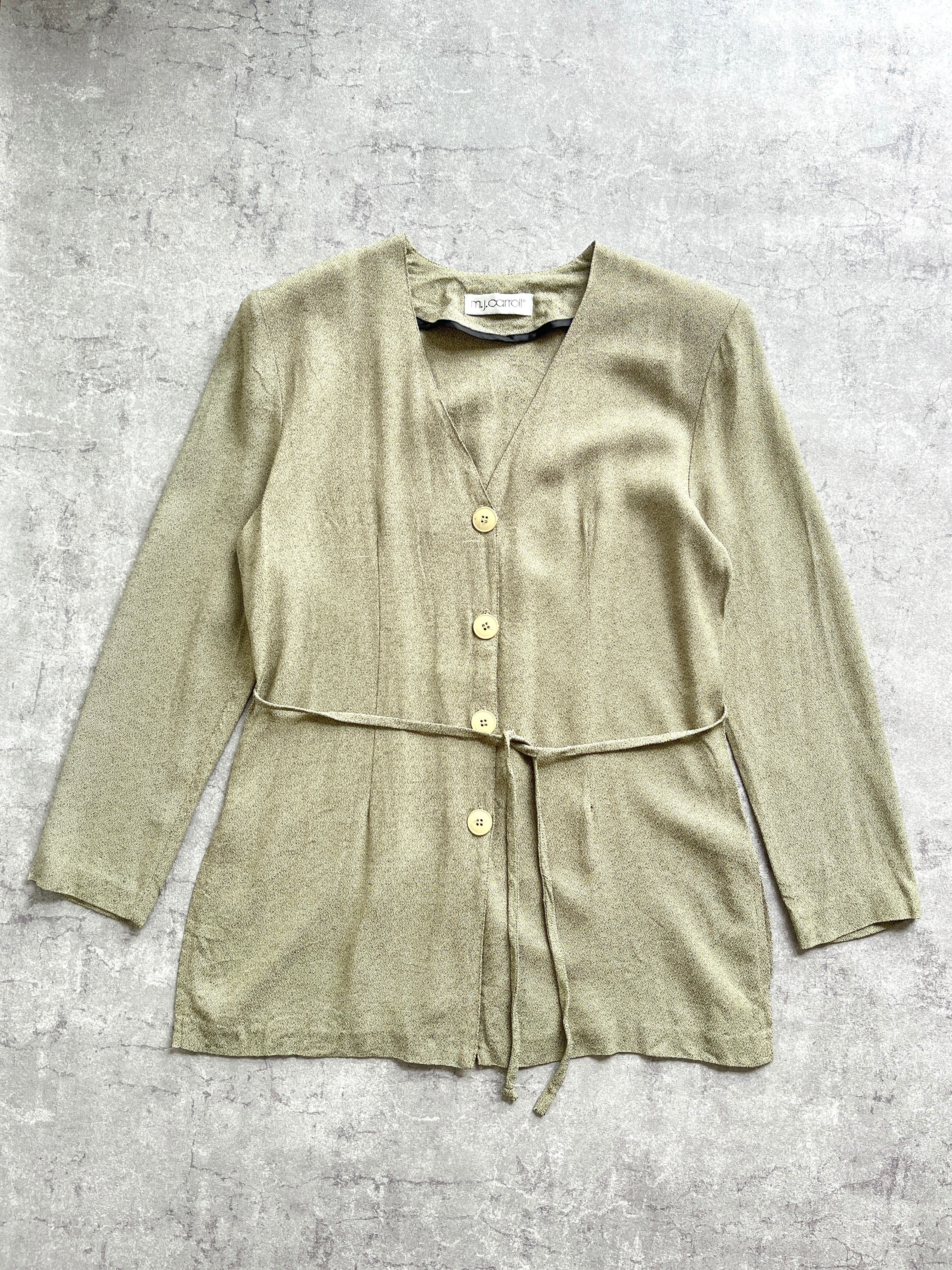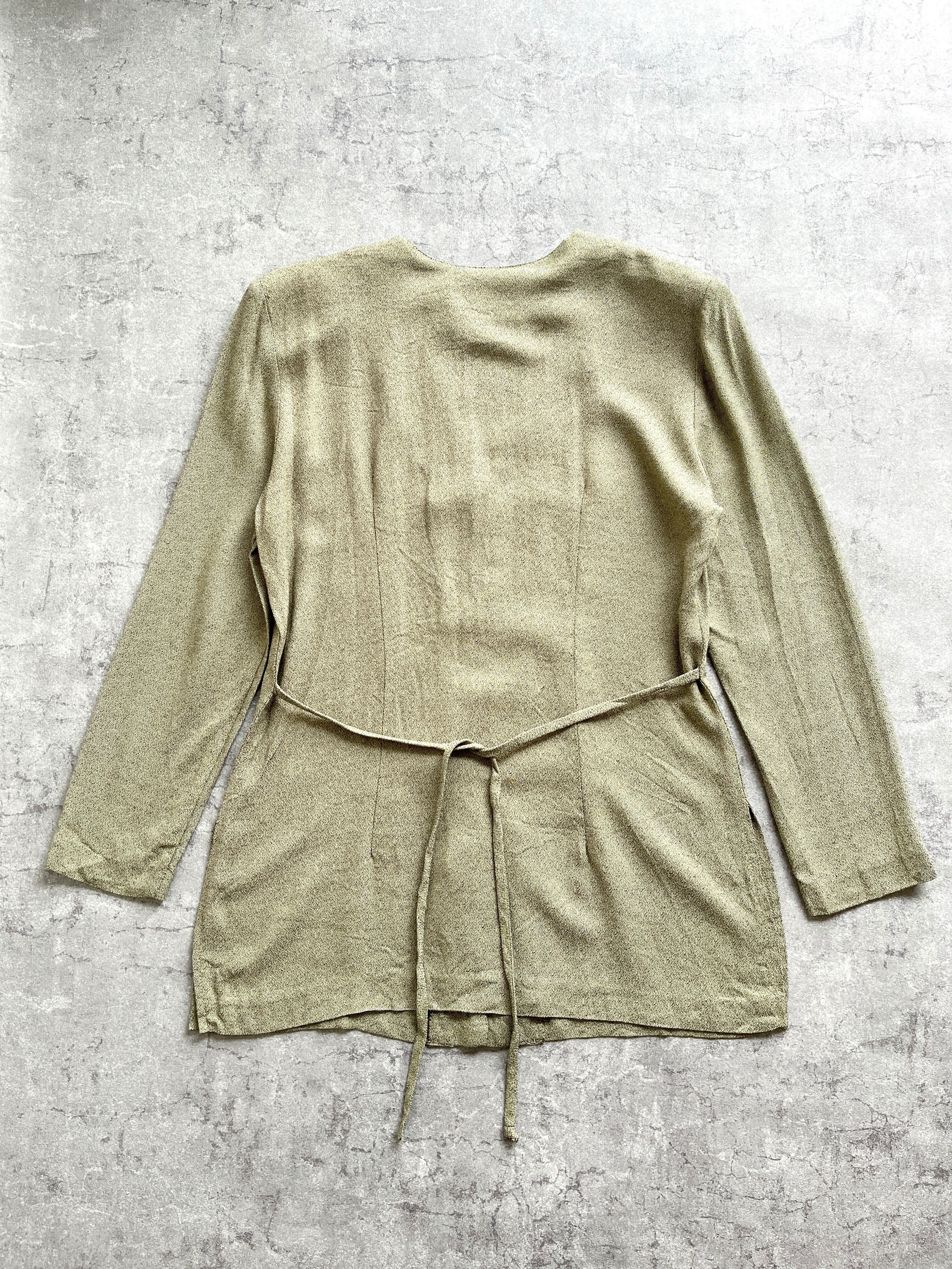 柄やカラー選びに特徴のある同ブランドならではの、グリーンベージュの絶妙なモザイク調の生地です。