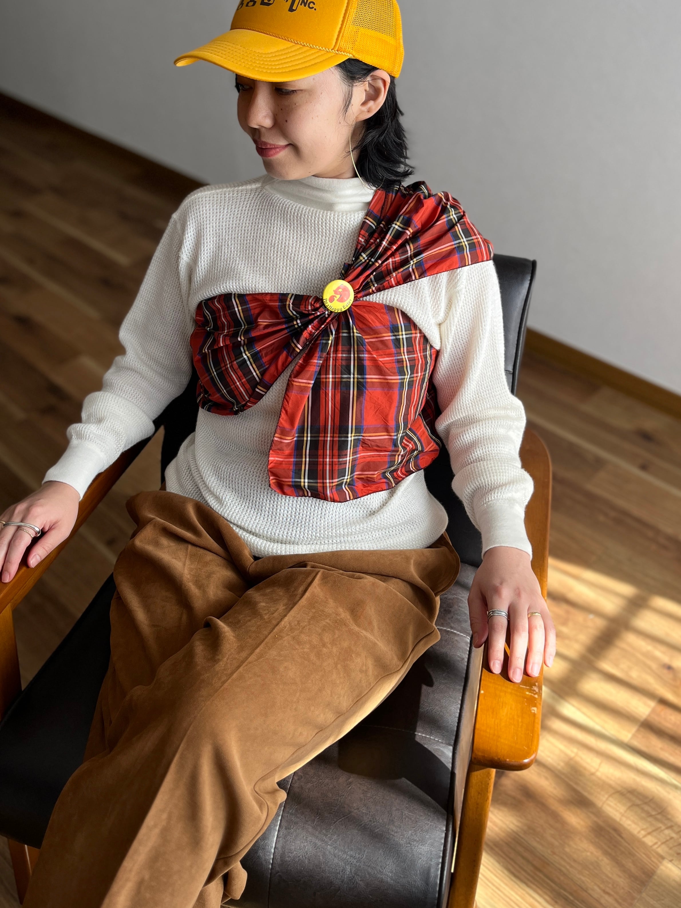 タータンチェックが可愛いこちらの長方形ストール。