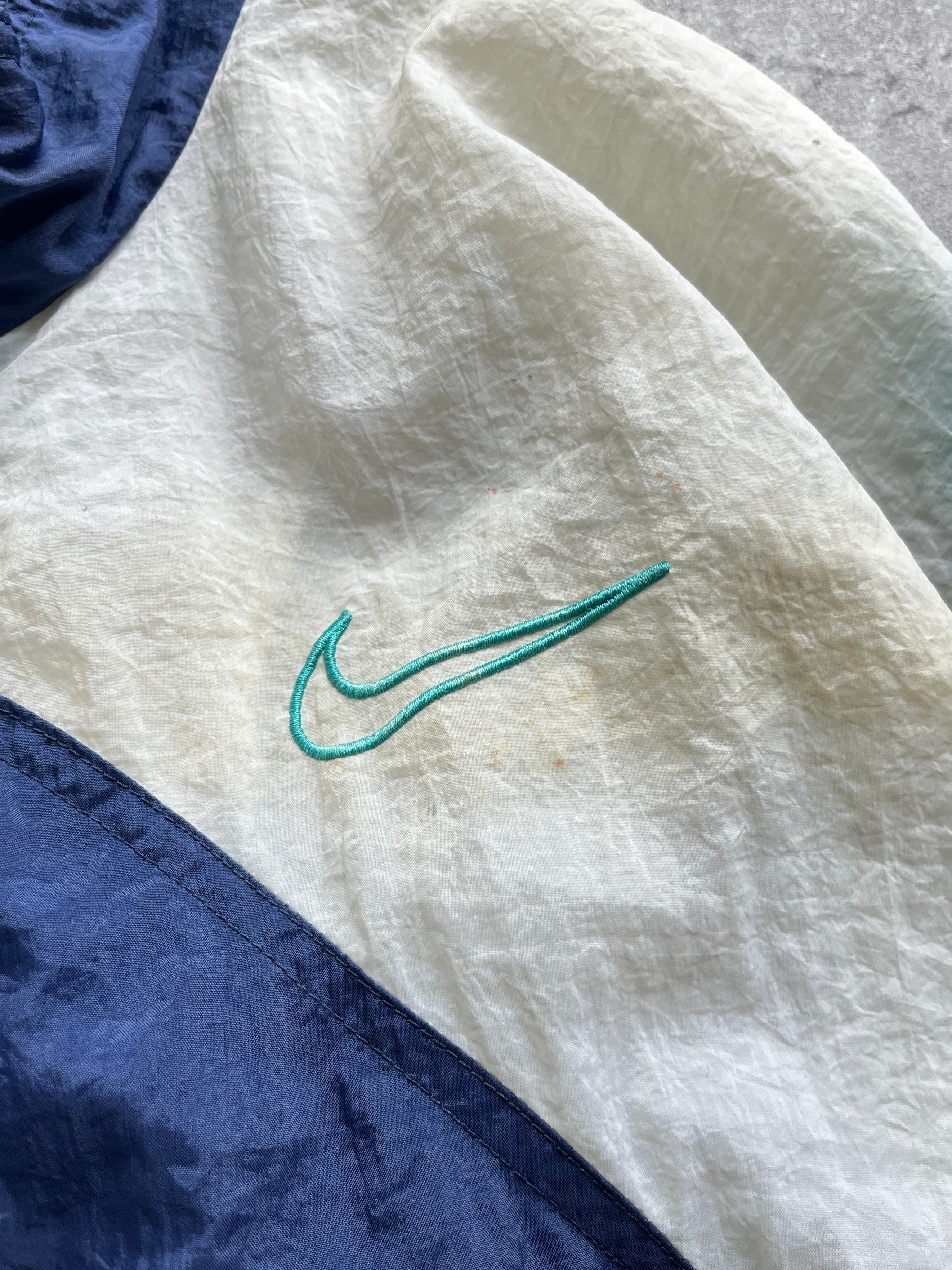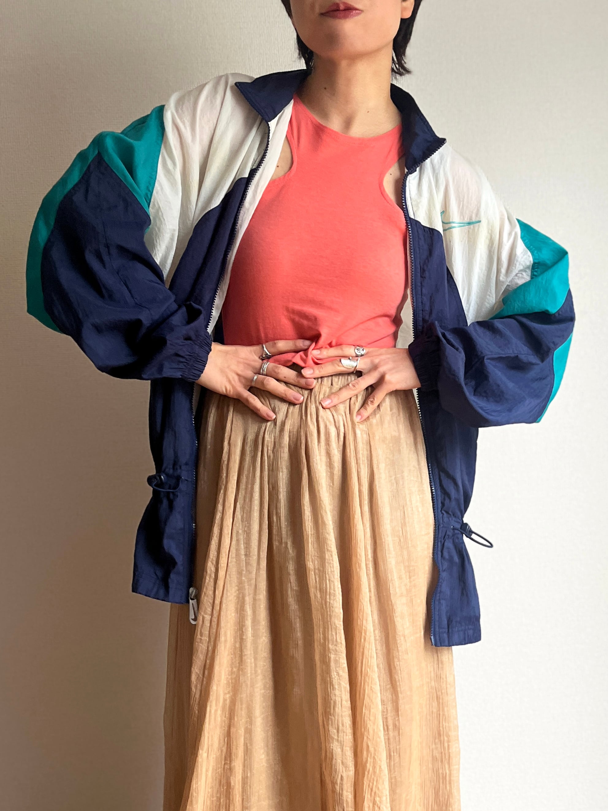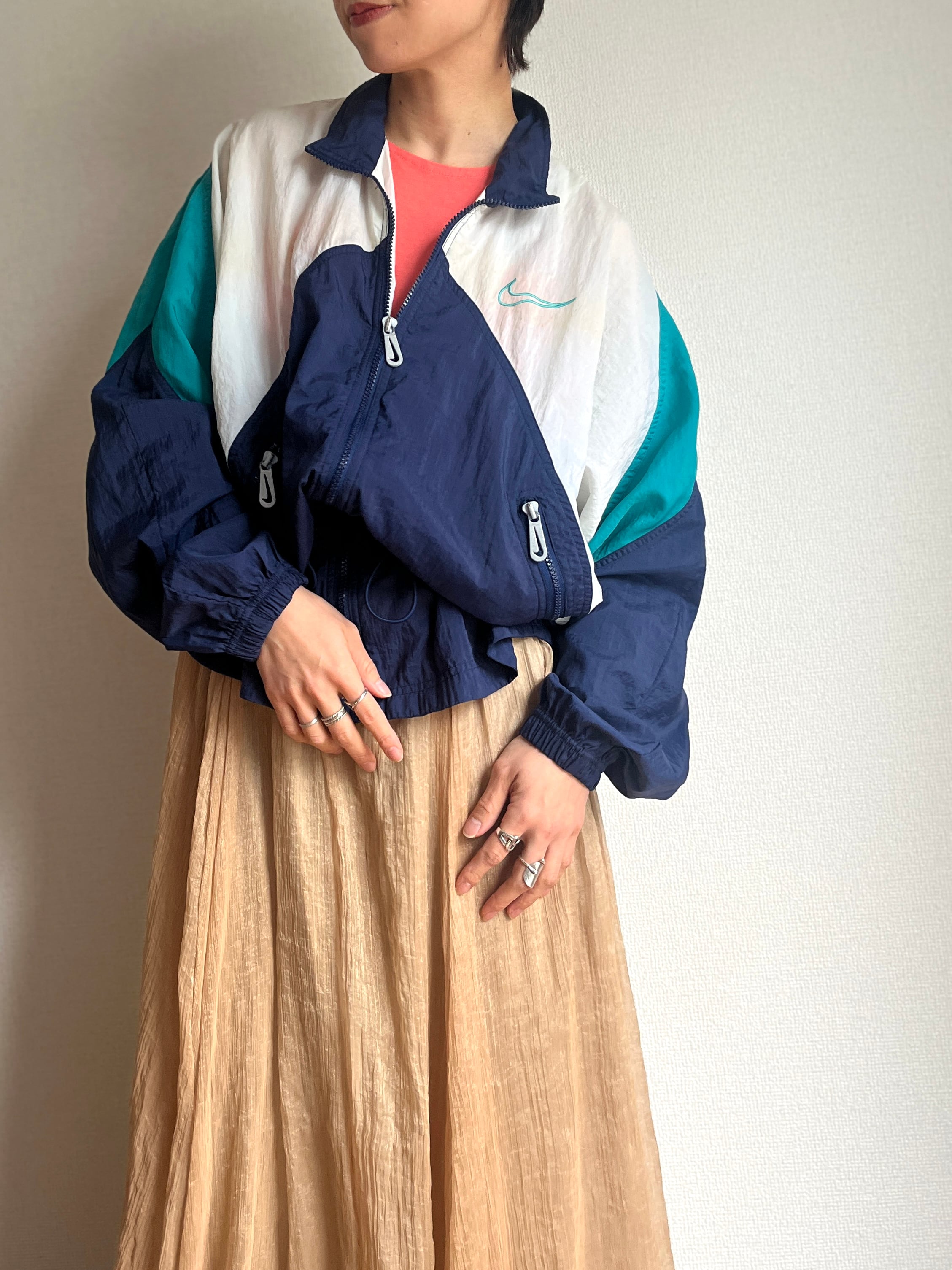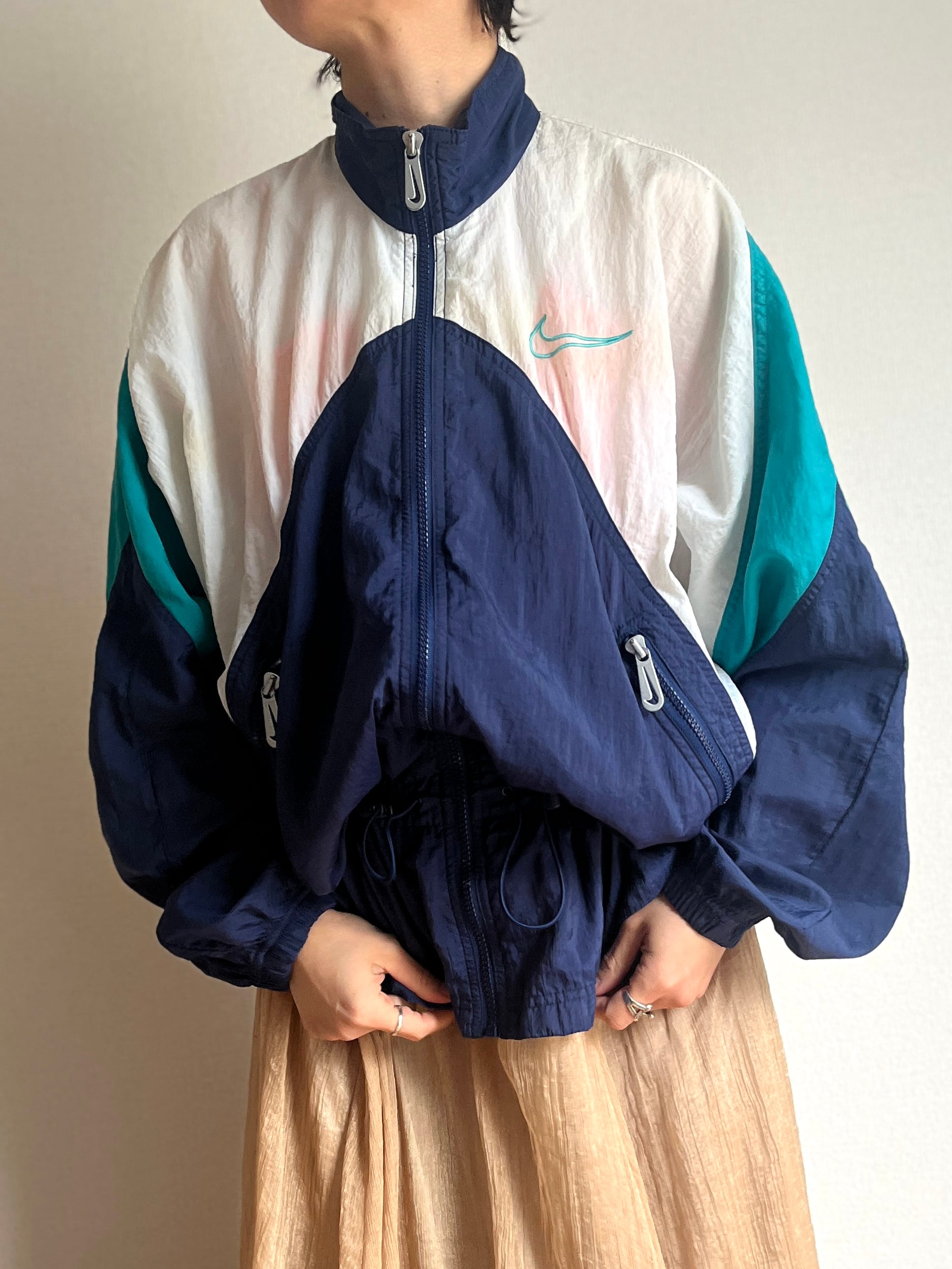90年代にたまに見られる、ウエストドローコード仕様のデザインが可愛いナイキのナイロンジャケット。カラーリングも抜群です!