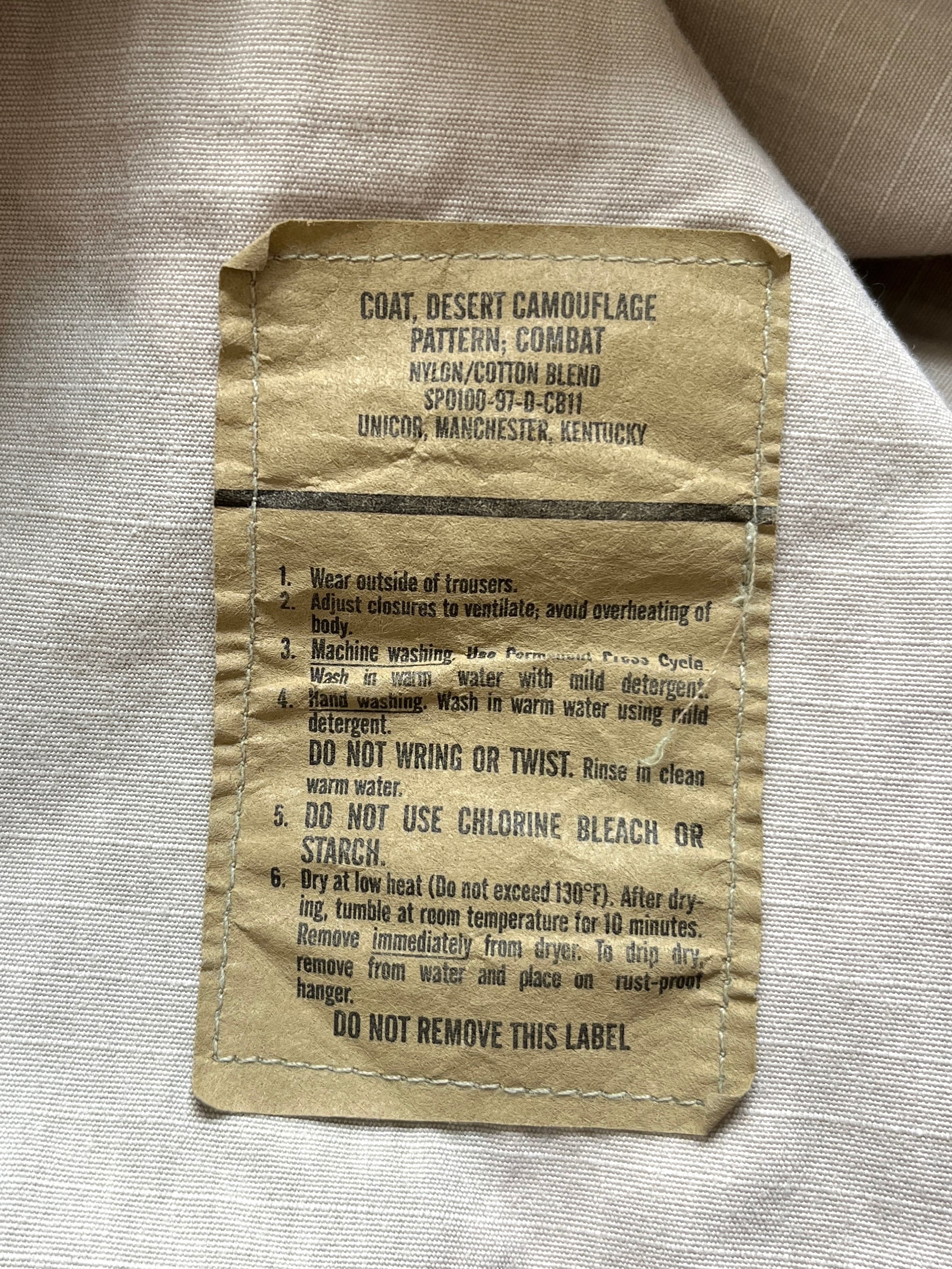 97年製のDCU(=DESERT CAMOUFLAGE UNIFORM)ジャケット。