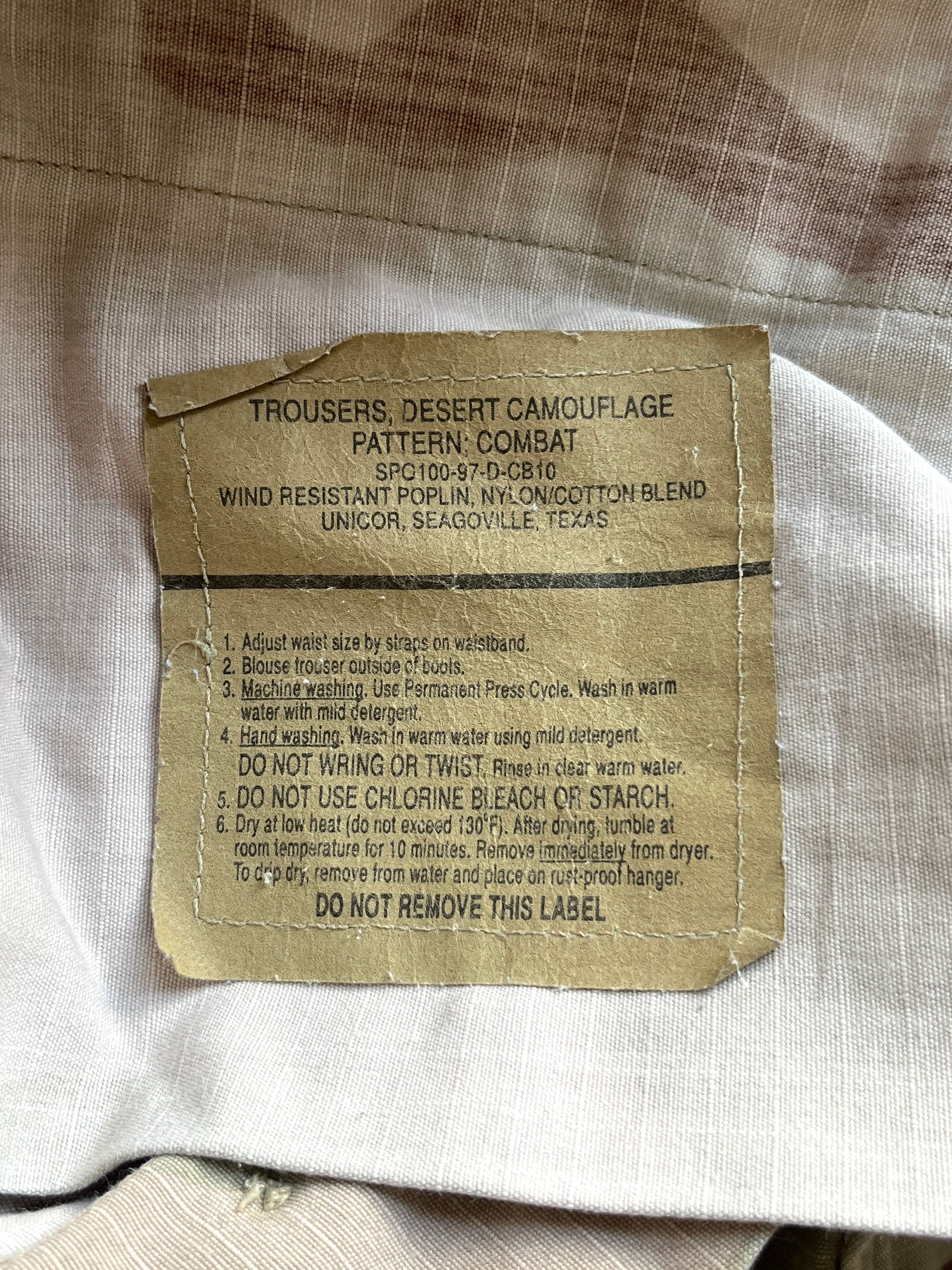 97年製のDCU(=DESERT CAMOUFLAGE UNIFORM)パンツ。