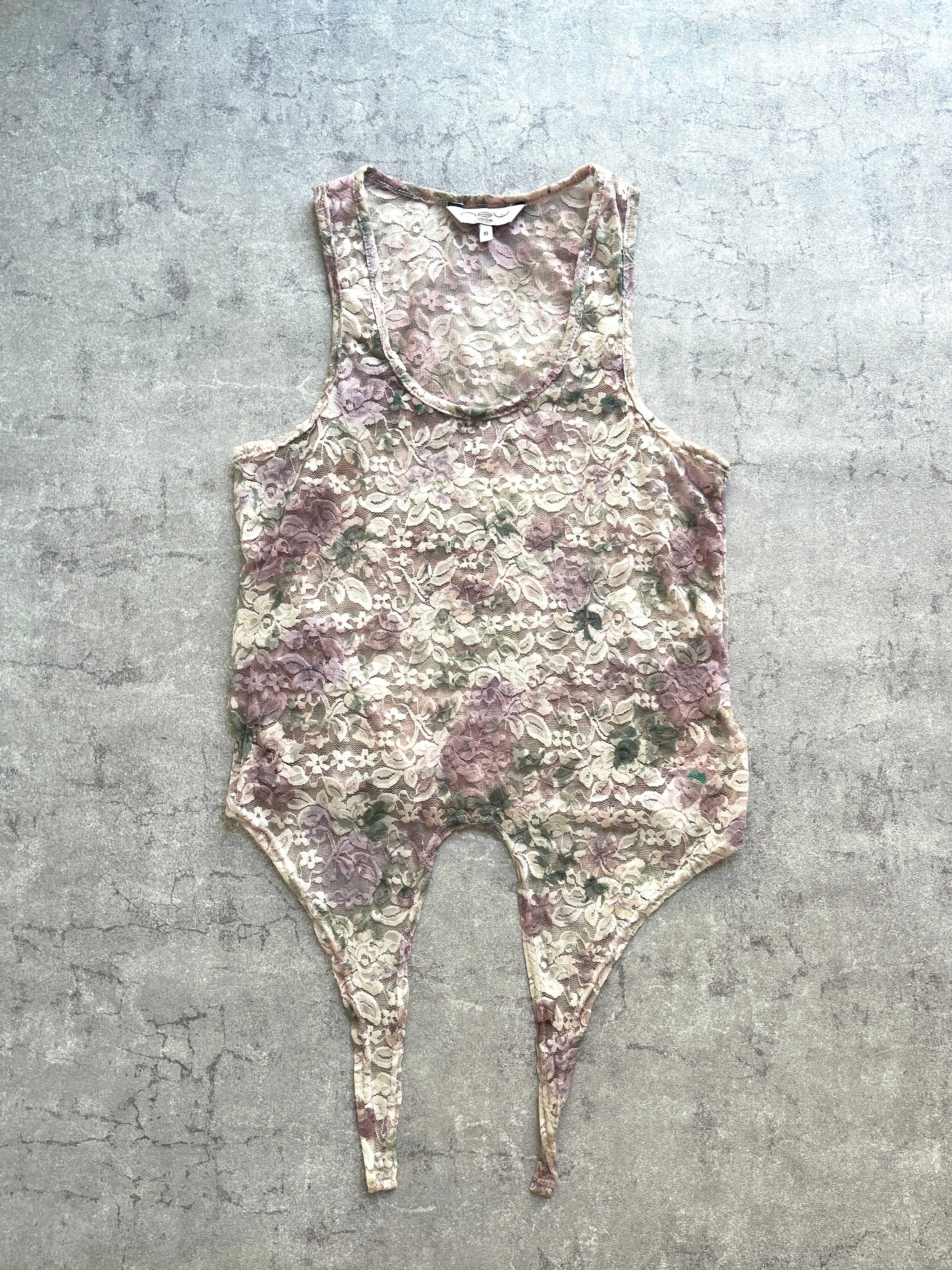 Dyed lace garter drop tank top