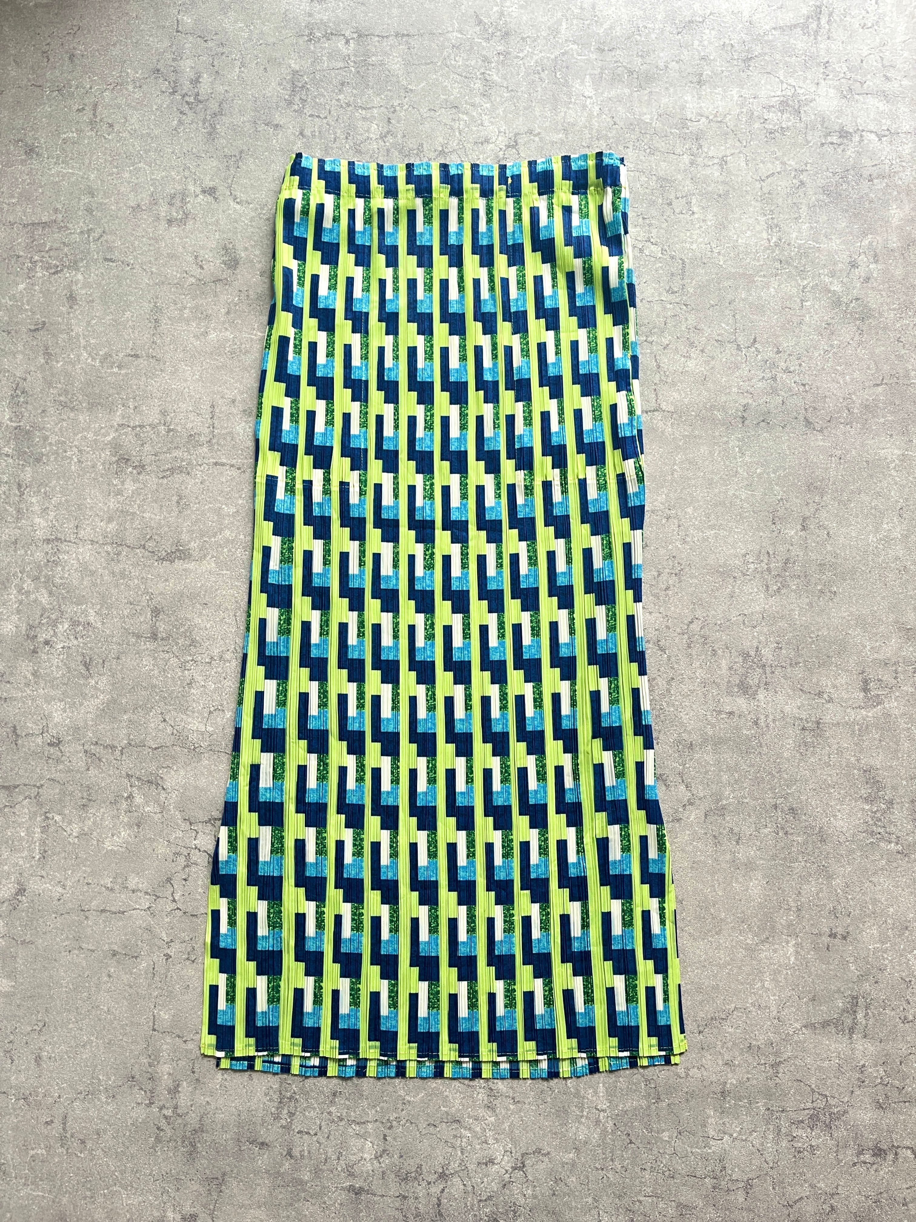 ノーブランドですが、幾何学柄のプリントやカラーバランスが素敵なペンシルスカート。