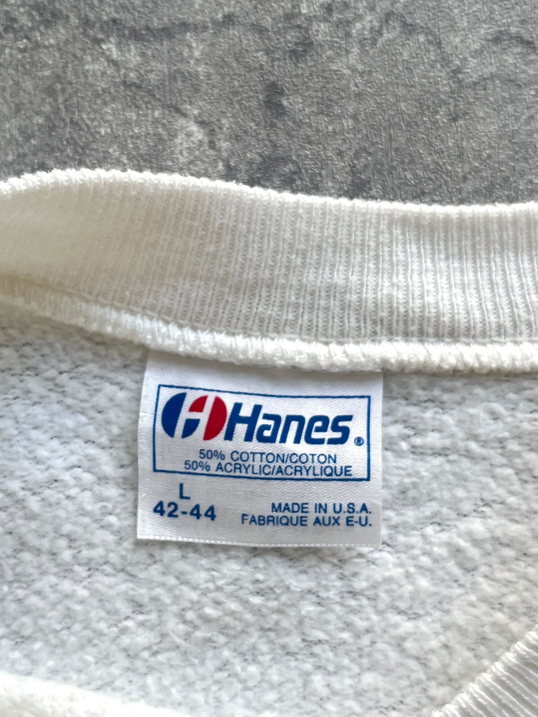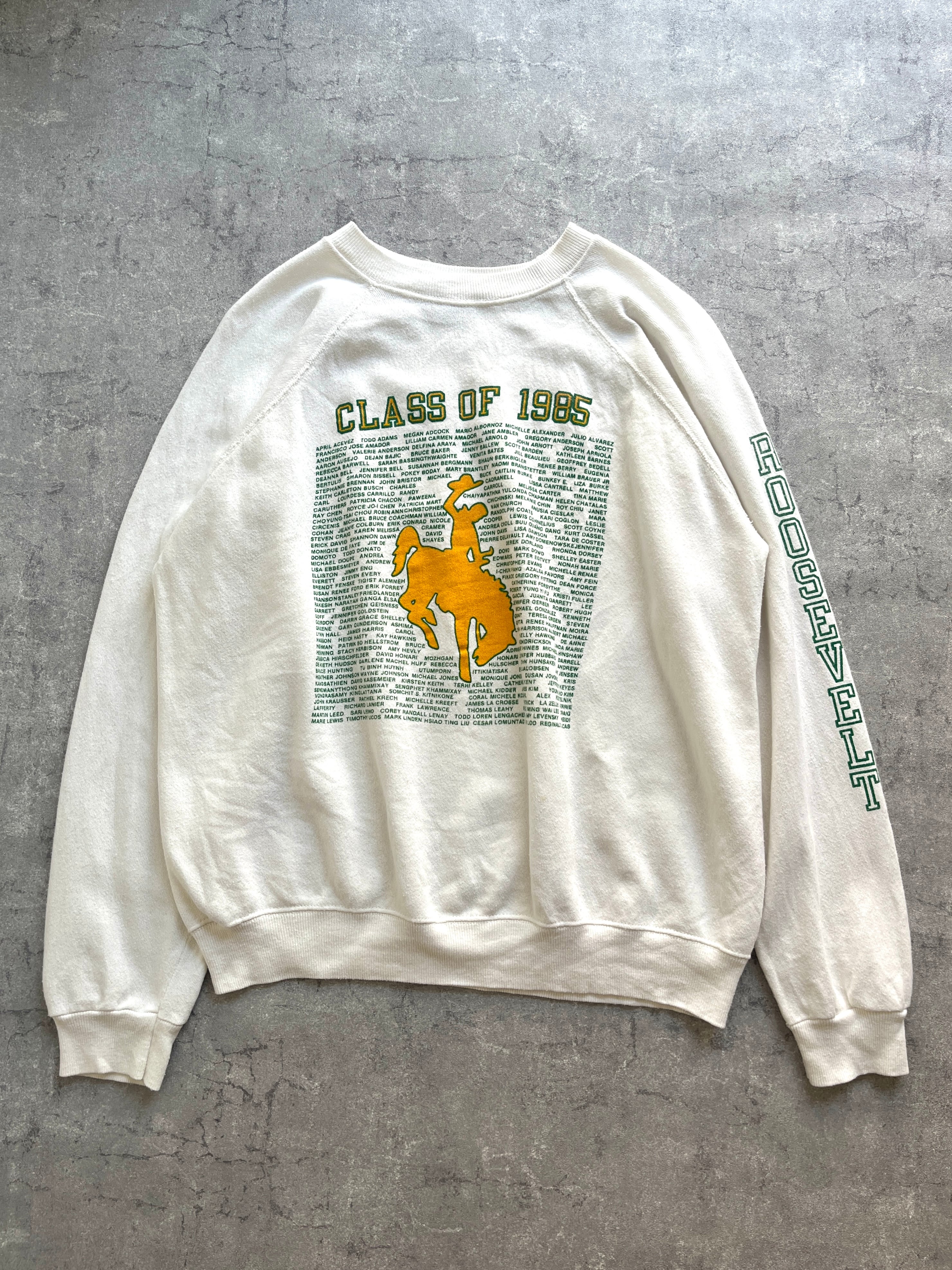 ラグラン×オフホワイトのコットンアクリルボディが80年代ならではのこちらは、ルーズベルト大学のクラスTならぬクラススウェット!1985年のものです。