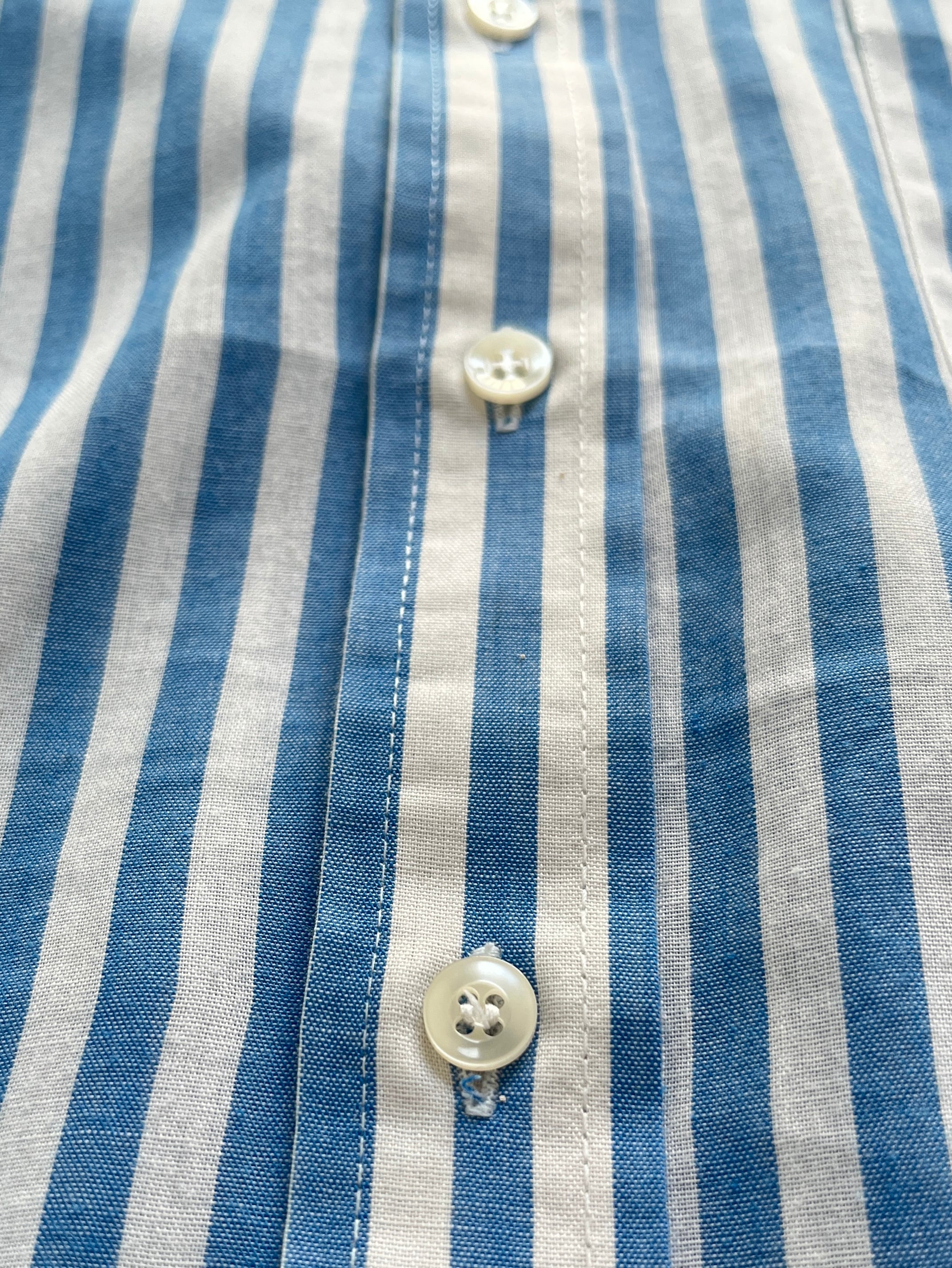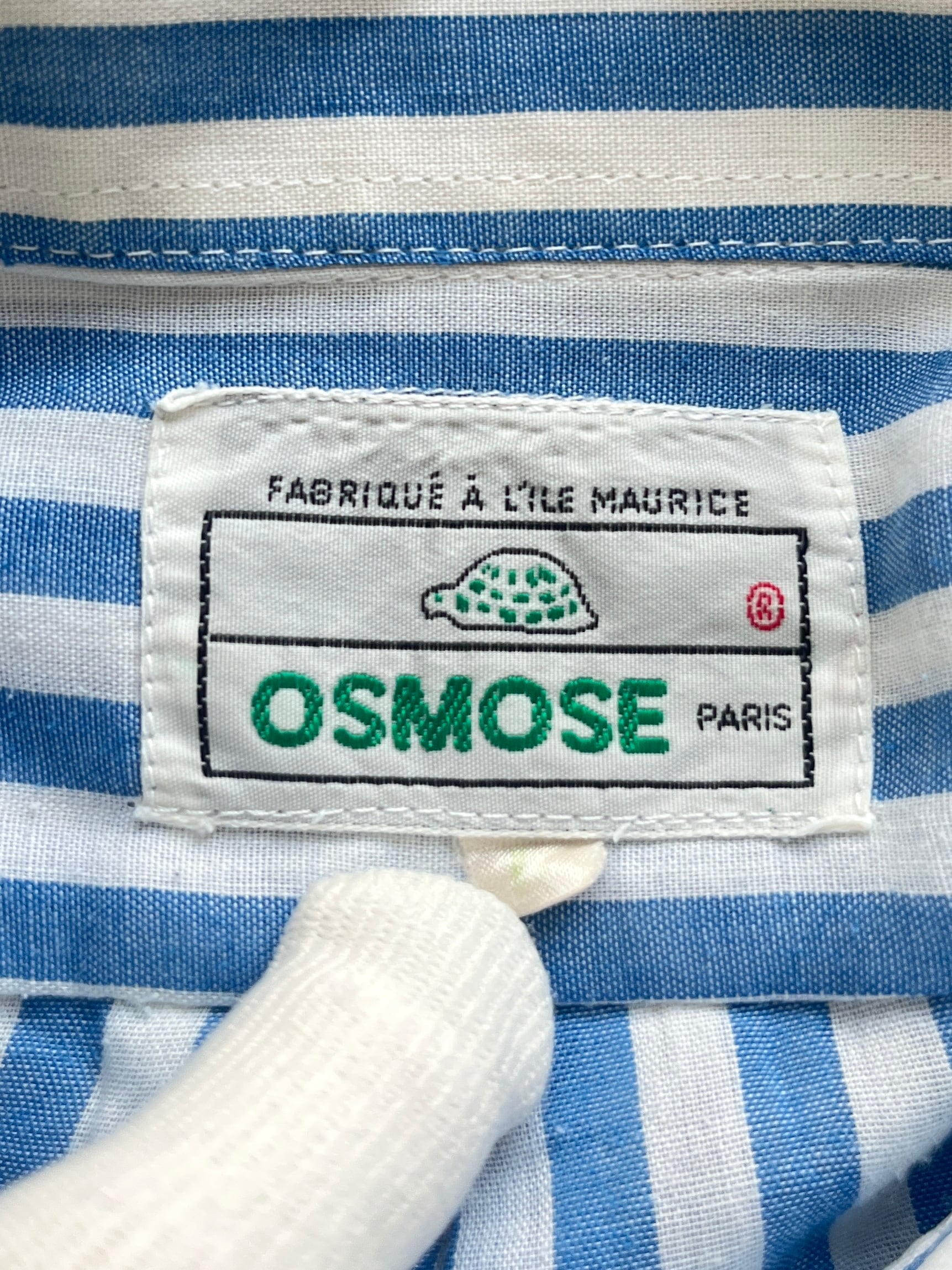 あまり知られていないパリのブランド、"OSMOSE"のストライプ・ボタンダウンシャツ。タグのデザインがとても可愛いです。