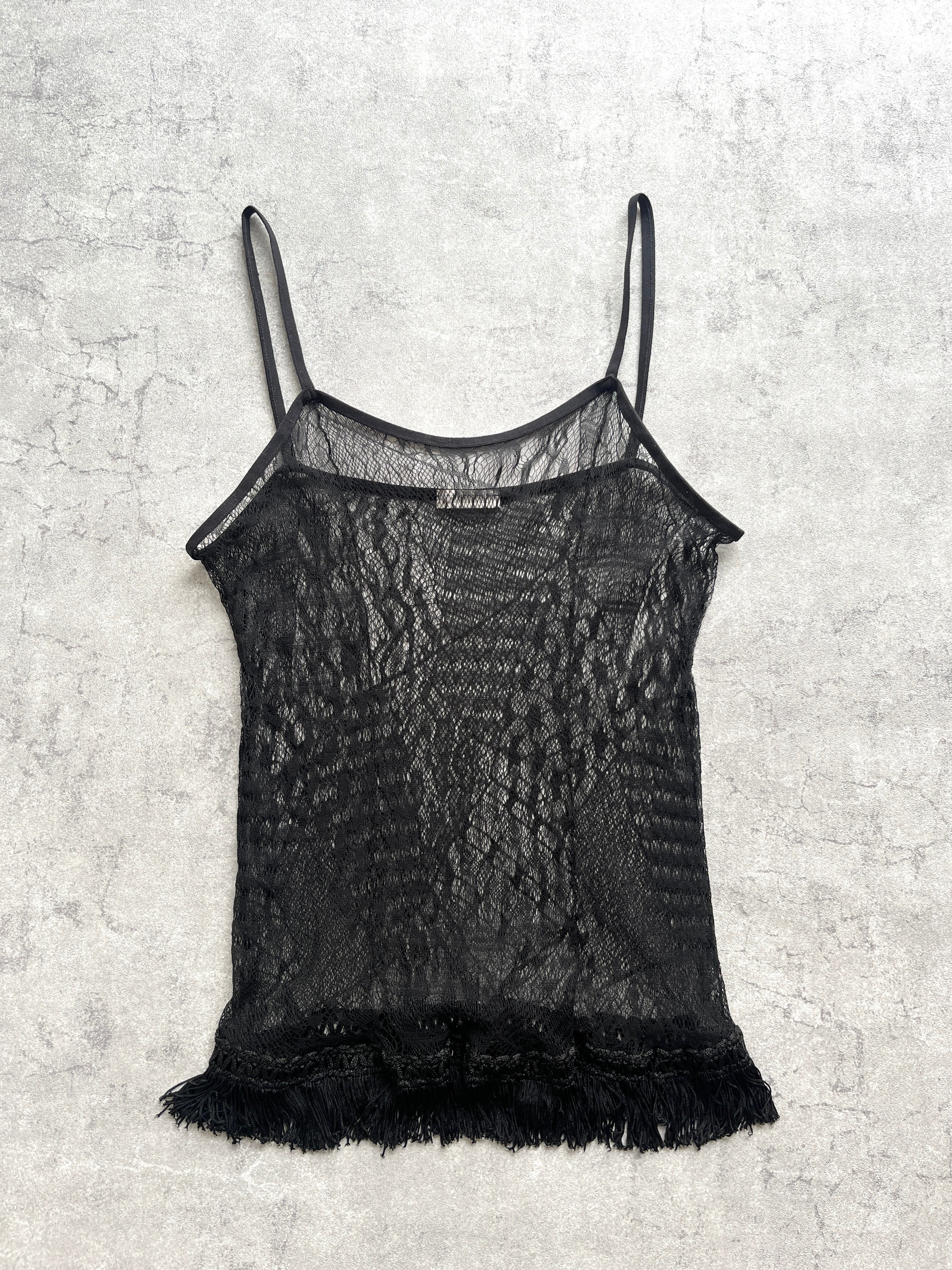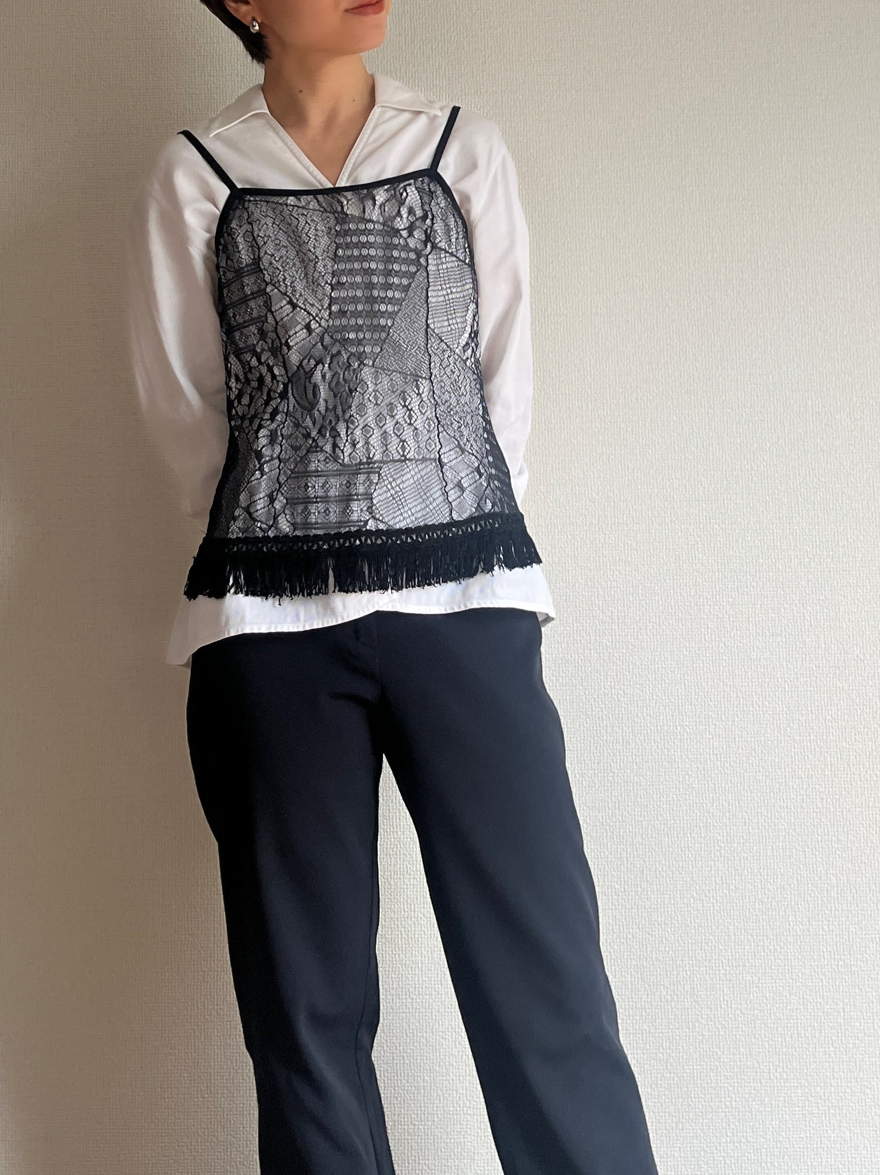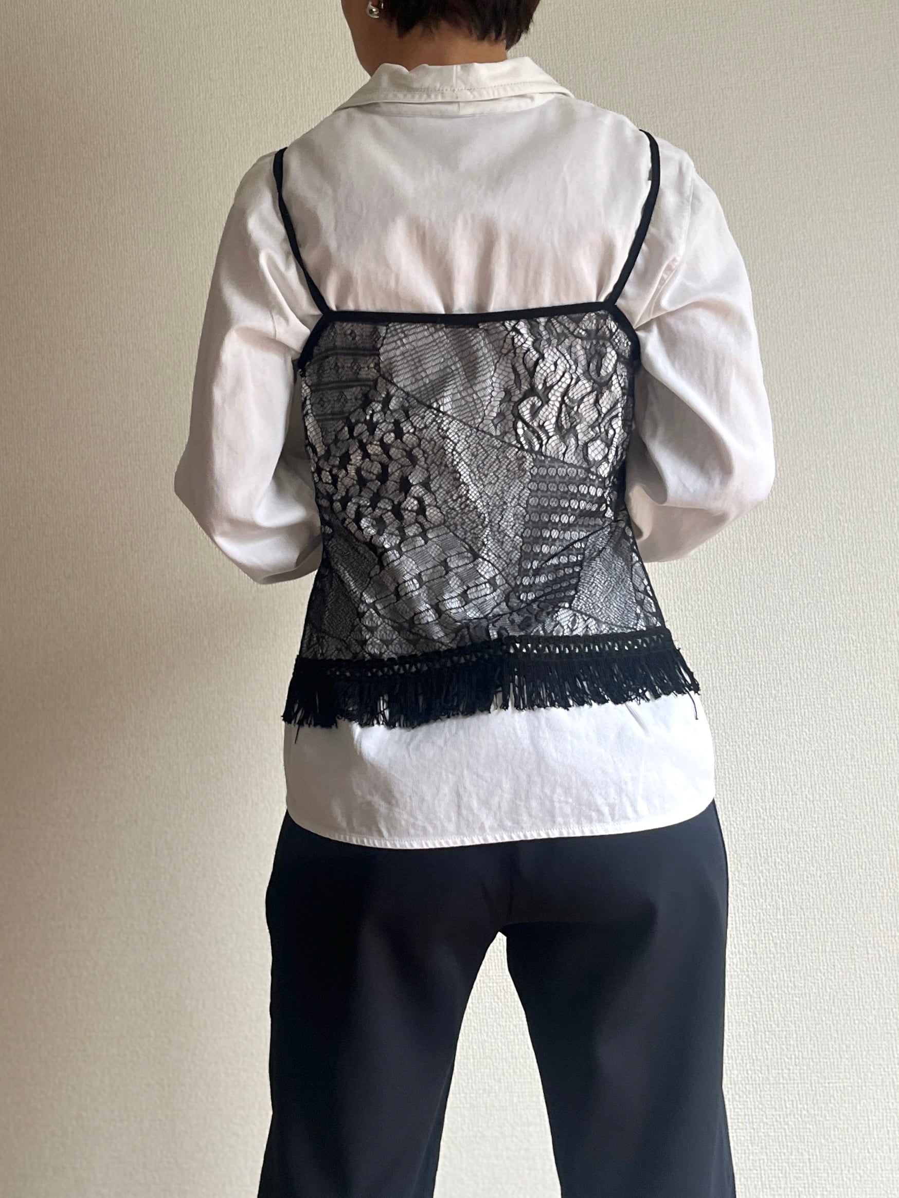 リゾートウェアなど華やかなアイテムを得意とする、イタリアのレディースブランド”STEFANIA CANAVESI”のレース×フリンジキャミソール。