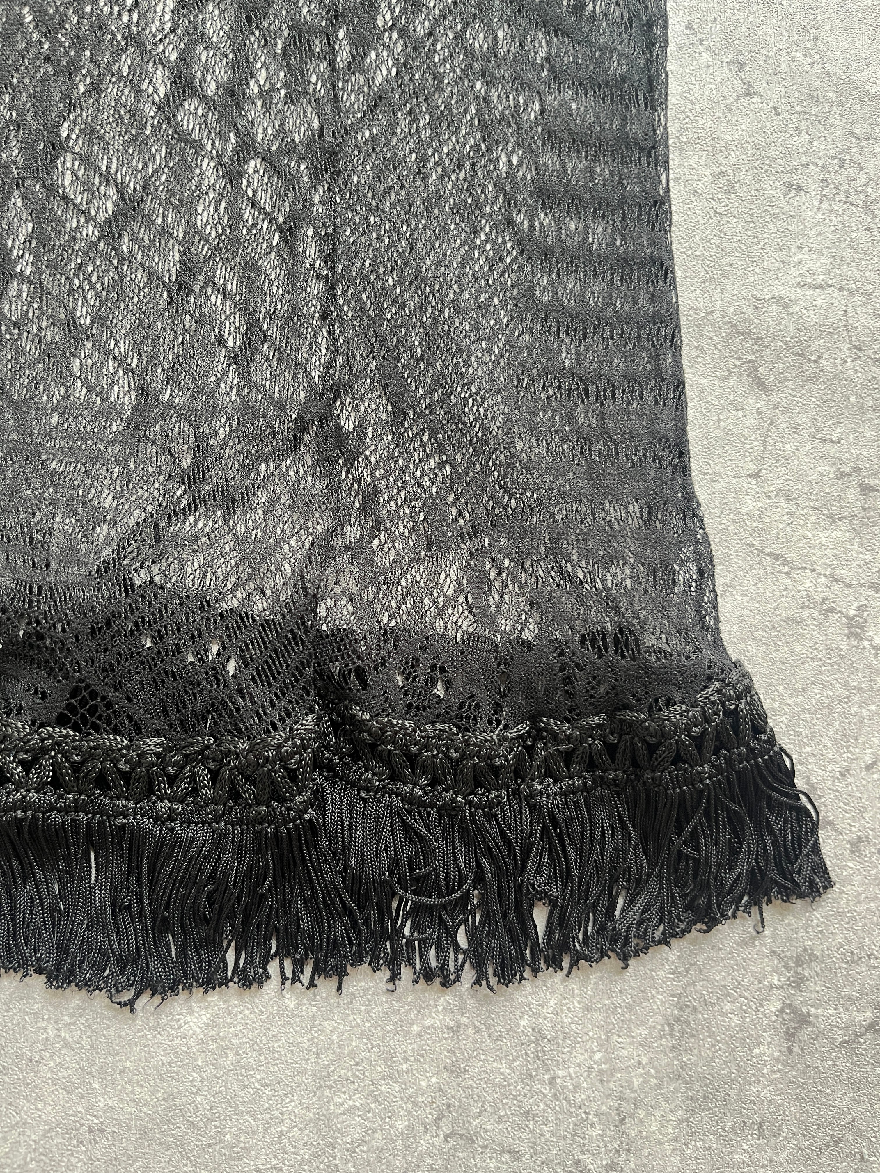 フリンジへの切り替え部分の編みも素晴らしく、ブラックでも繊細でで大人が着やすい上品な一枚。