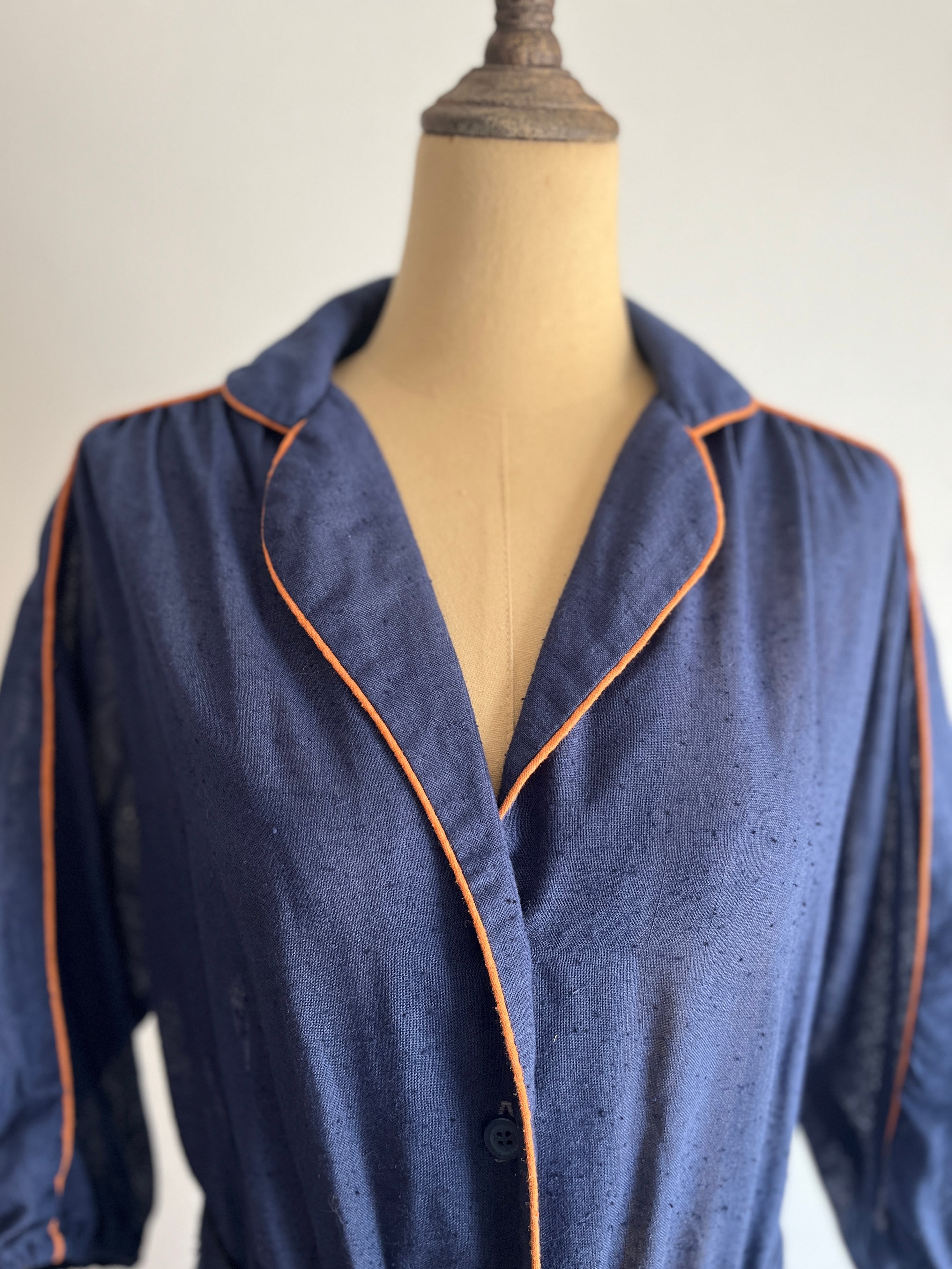襟とラペルの綺麗なカーブ、そして丁寧なパイピングに、シックなデザインながらも心躍る一着。カラーリングはアメリカらしい(ラルフローレンにも通ずる)雰囲気を感じます。