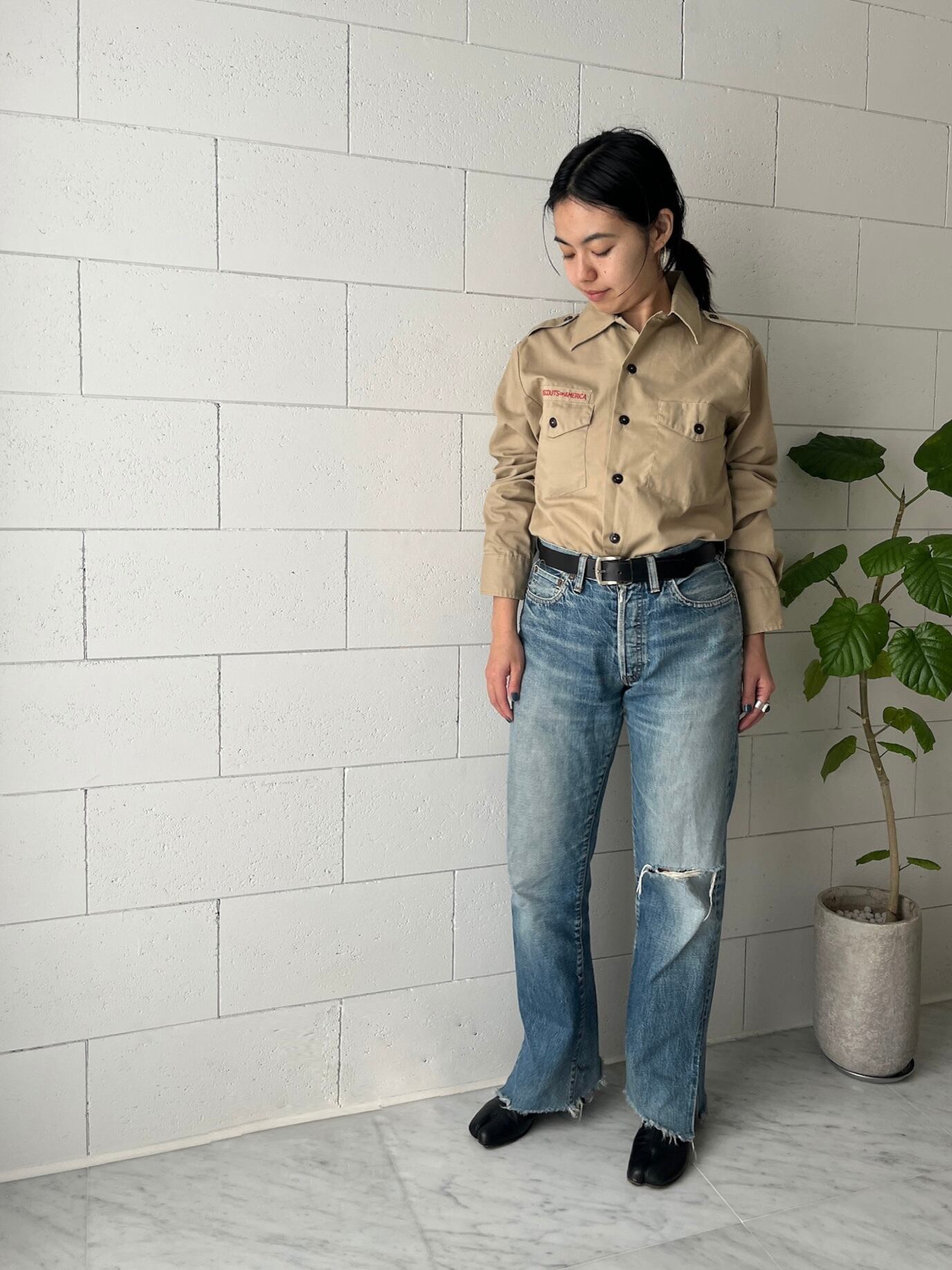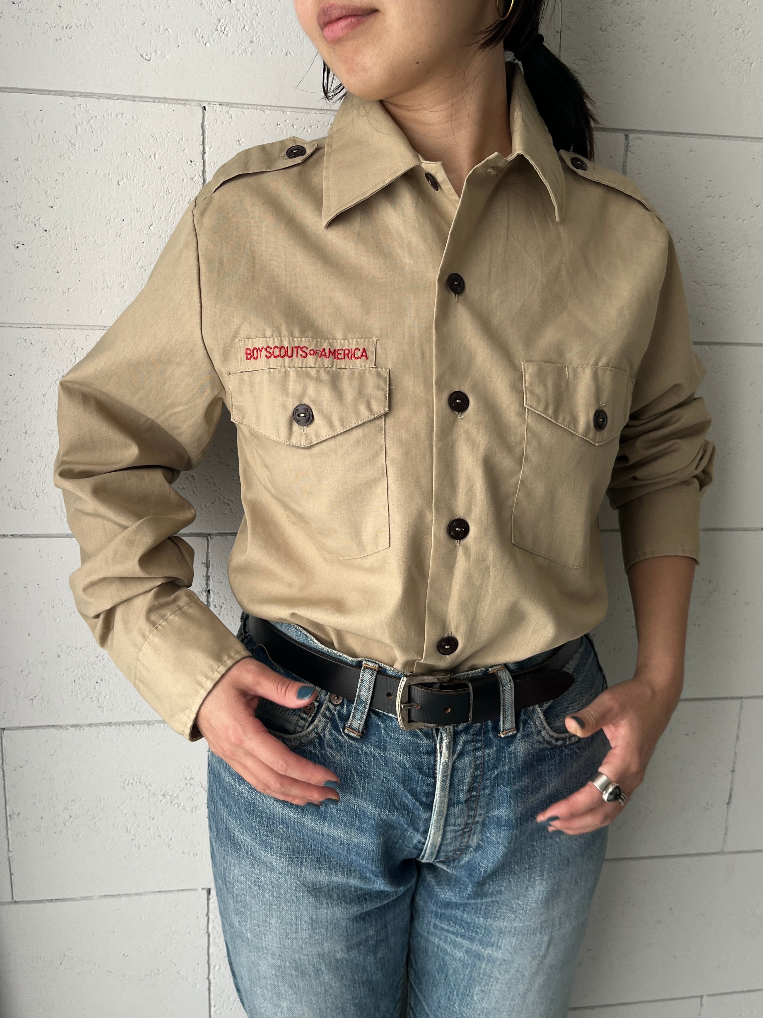 スカウト章である矢じりの入った釦や、胸ポケット上の刺繍がとても素敵です。