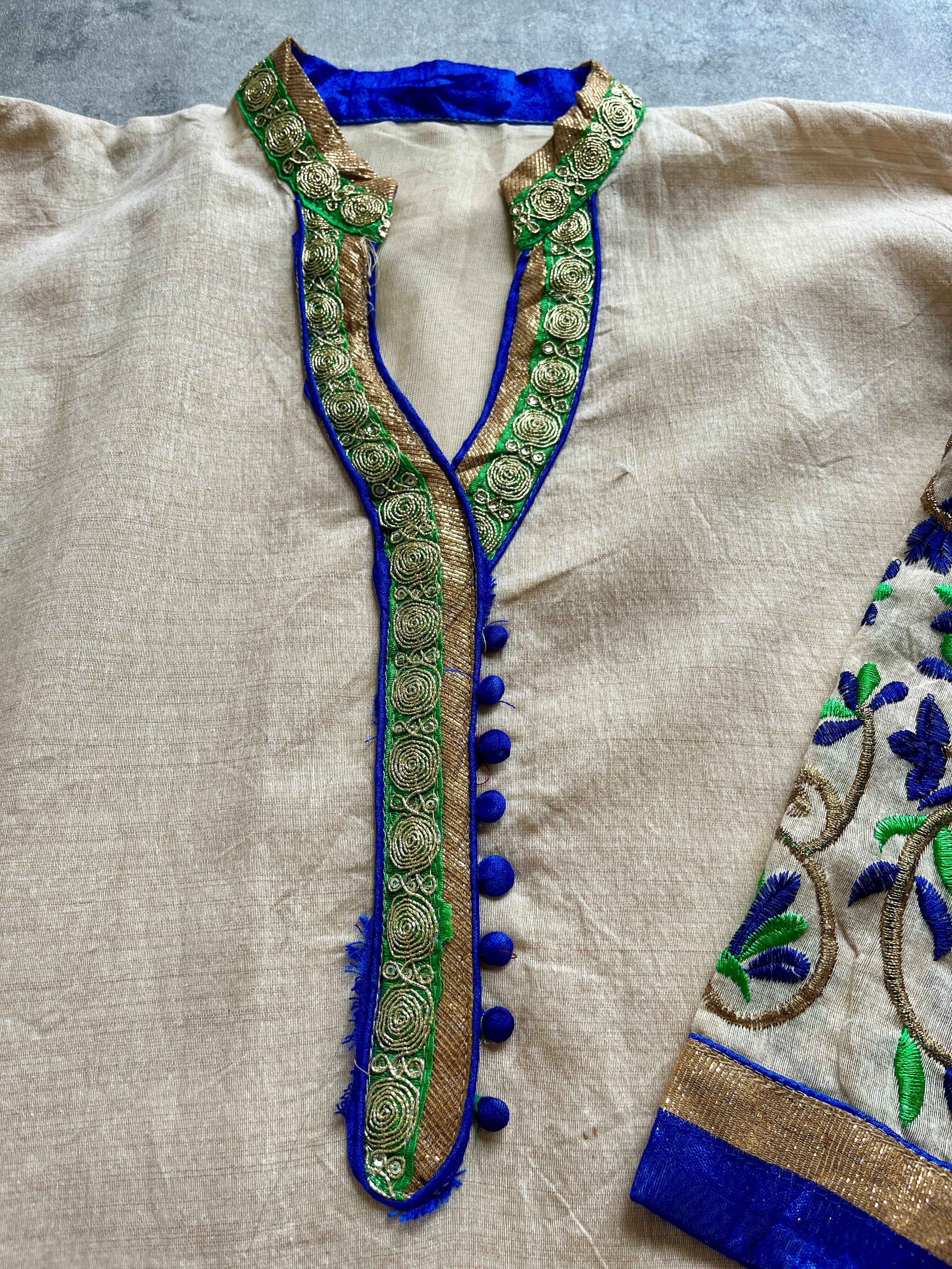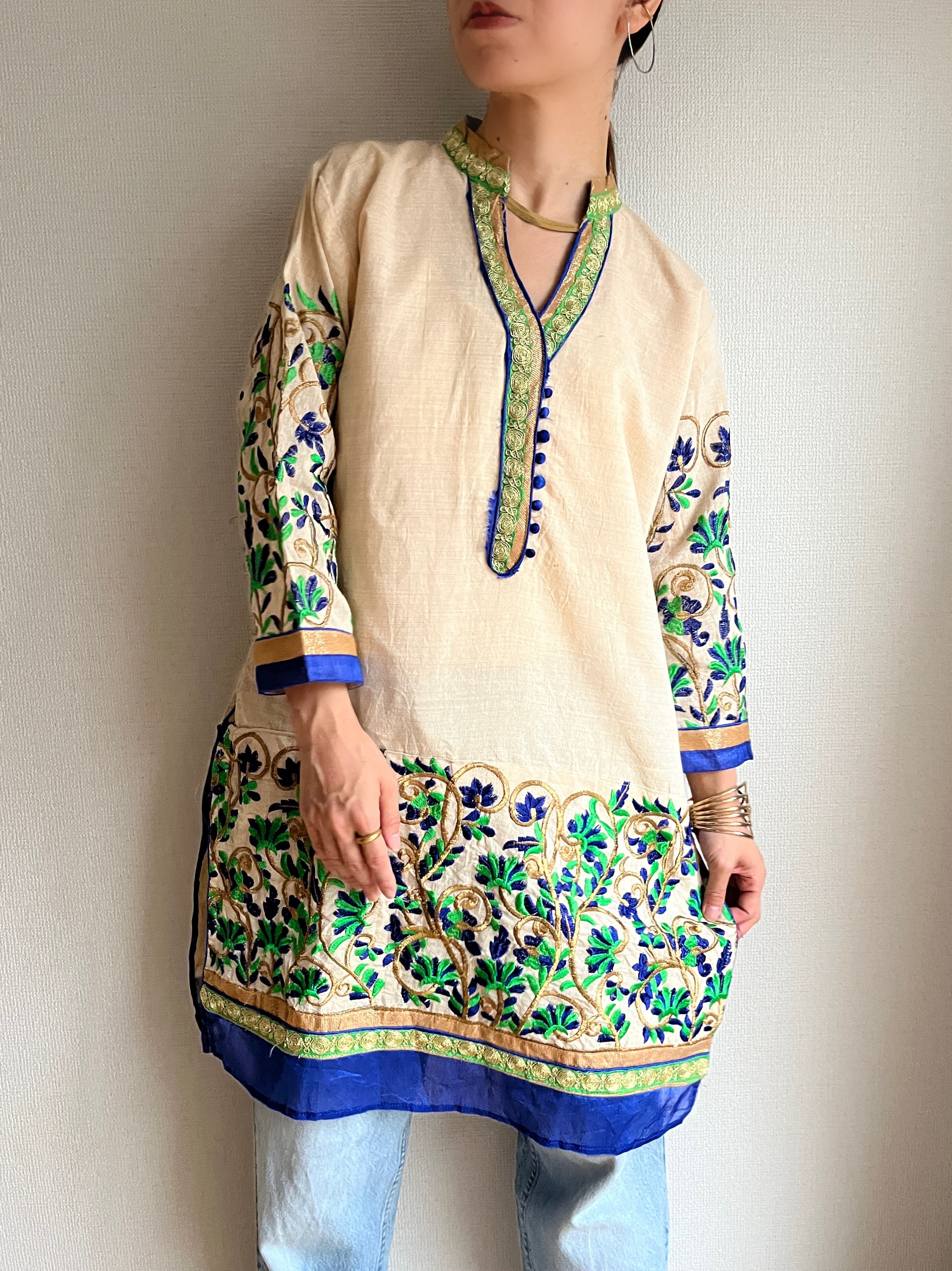 ふんだんに入ったアラベスクの刺繍、金糸づかい、配色の美しさに心惹かれるチュニックドレス。