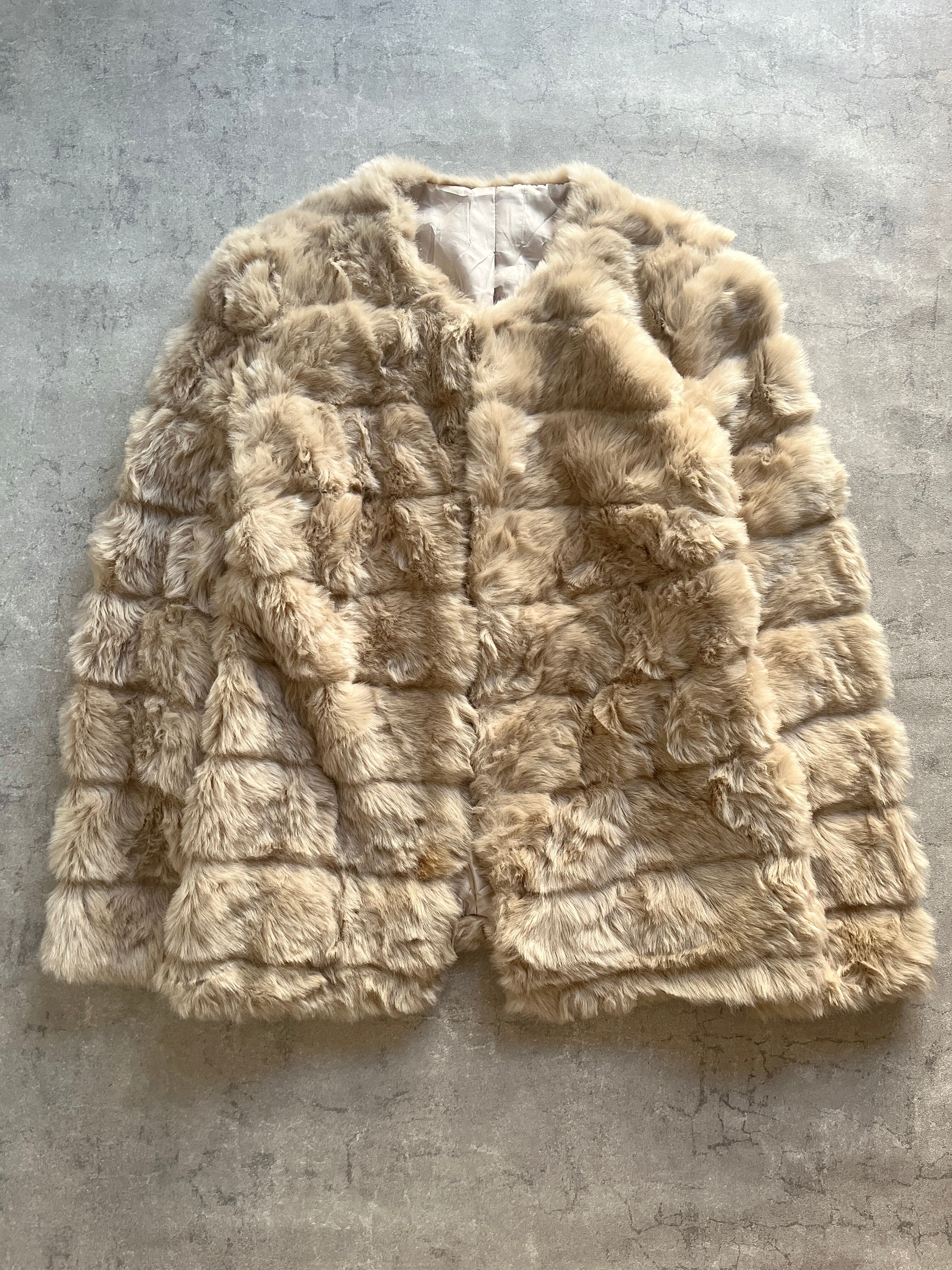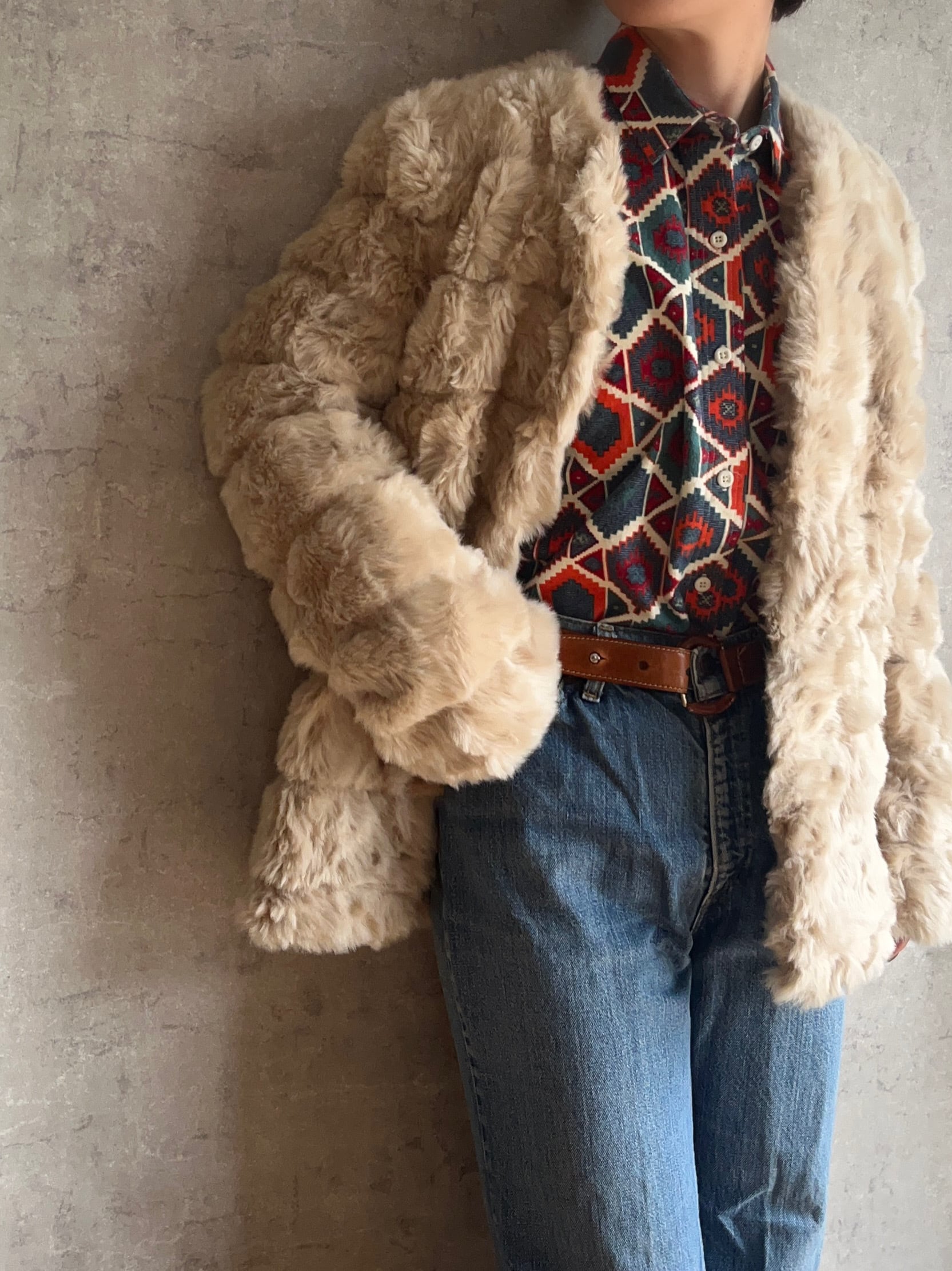 毛足のボリュームや柔らかさが損なわれず、ユーズドとは思えない良好な状態のリアルファージャケットです。カラーはスタイリングのしやすいライトベージュ。