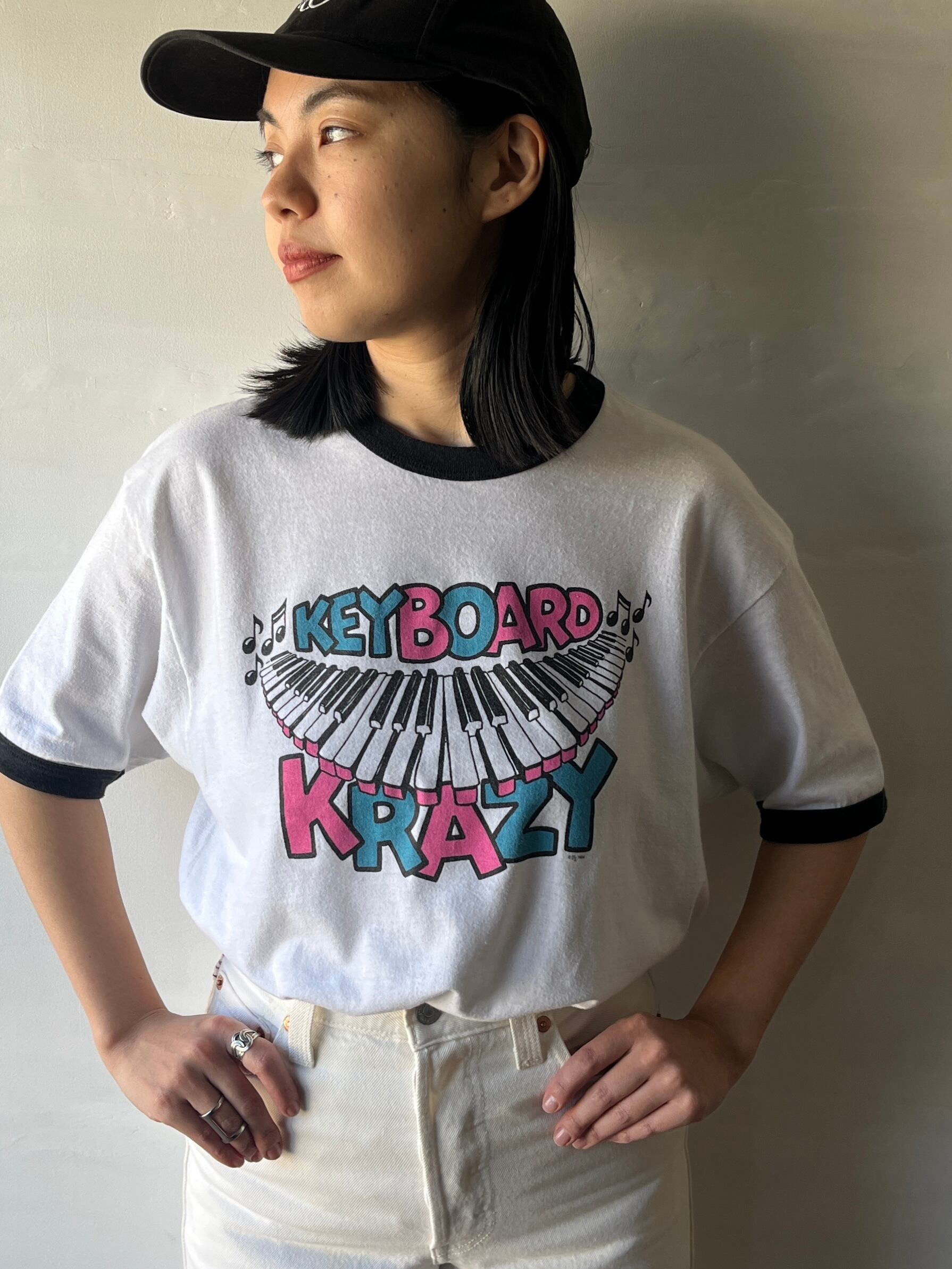 POPなキーボードプリントが目を引く、1984年製のリンガーTシャツ。